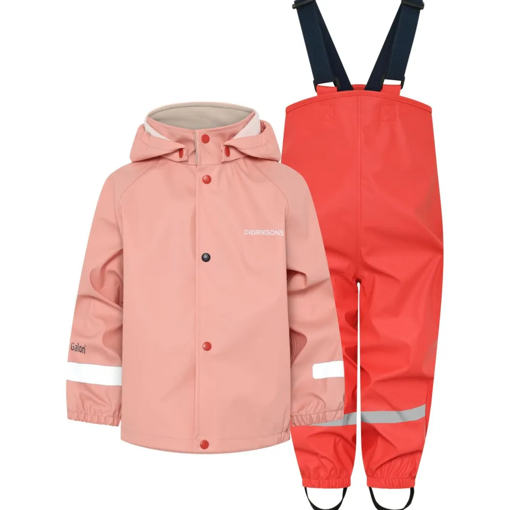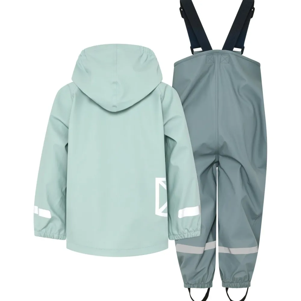 Aber auch auf praktische Details muss beim Kid’s Slaskeman Set 4 nicht verzichtet werden. Die Kapuze ist lediglich mittels Druckknöpfen an der Jacke befestigt. Bleibt das Kind also irgendwo hängen, wird die Kapuze einfach abgetrennt. Die Hose wurde außerdem mit verstellbaren Hosenträgern ausgestattet und rutscht somit auch beim Toben nicht.