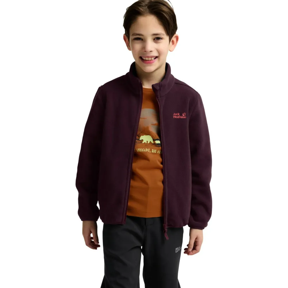 Die Kid’s Vertigo Fleece Jacket von Jack Wolfskin ist ein echter Allrounder für den kindlichen Alltag. Sie ist atmungsaktiv und schnelltrocknend. Dank der Verarbeitung von recyceltem Polyester punktet die Fleecejacke außerdem in Bezug auf Nachhaltigkeit. Der Stehkragen schmiegt sich angenehm an den empfindlichen Hals- und Nackenbereich. Die elastischen Ärmelbündchen sorgen für zusätzlichen Tragekomfort. Damit werden Kinder in ihrem Abenteuerdrang unterstützt. Der Logoprint auf der Brust ergänzt den Look der Fleecejacke. Sie kann mit vielen verschiedenen Outfits kombiniert werden. Die Fleecejacke ist ein echtes Must-have für aktive Kinder.