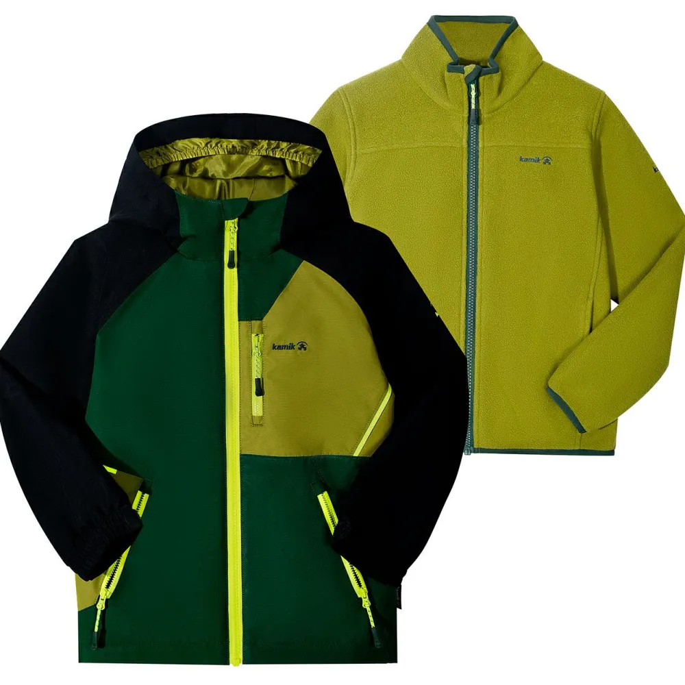 Die Außenjacke kommt mit der DriDefense Membran daher, die für einen zuverlässigen Wetterschutz und eine gute Atmungsaktivität sorgt. Der Klettverschluss an den Ärmeln und der Kordelzug im Saum optimiert die Passform. An ungemütlichen Tagen kommt die Kapuze zum Einsatz. Dazu kommt eine weiche Innenjacke aus Fleece, die man jederzeit integrieren kann. Sie bietet Wärmekomfort mit gutem Feuchtigkeitsmanagement. Zudem ist sie elastisch für mehr Bewegungsfreiheit. Reflektierende Elemente sorgen für mehr Sichtbarkeit. Ein Allrounder zum Wandern, der sich an die wechselnden Bedürfnisse anpasst!