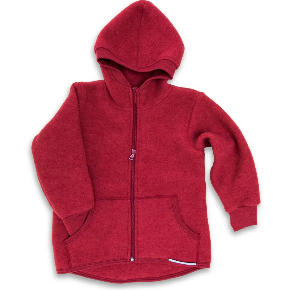 Ideal zum Drachen steigen lassen oder beim Spielen im Waldkindi: die Engel Kinder Kapuzenjacke Wollfleece! Die Wolljacke aus feinster Schurwolle liegt super weich und garantiert kratzfrei auf der Haut. Das kuschelige Wollfleecematerial wärmt angenehm und sorgt dafür, dass sich die Hitze nicht unter der Jacke anstaut. Die temperaturregulierende Wolle ist außerdem super strapazierfähig – Schmutz lässt sich einfach ausbürsten! Durch die elastischen Einfassungen an der Kapuze und an den Bündchen bleibt kalter Wind außerhalb der Jacke und die Kids finden in den beiden Vordertaschen auch einen warmen Platz für kalte Finger.