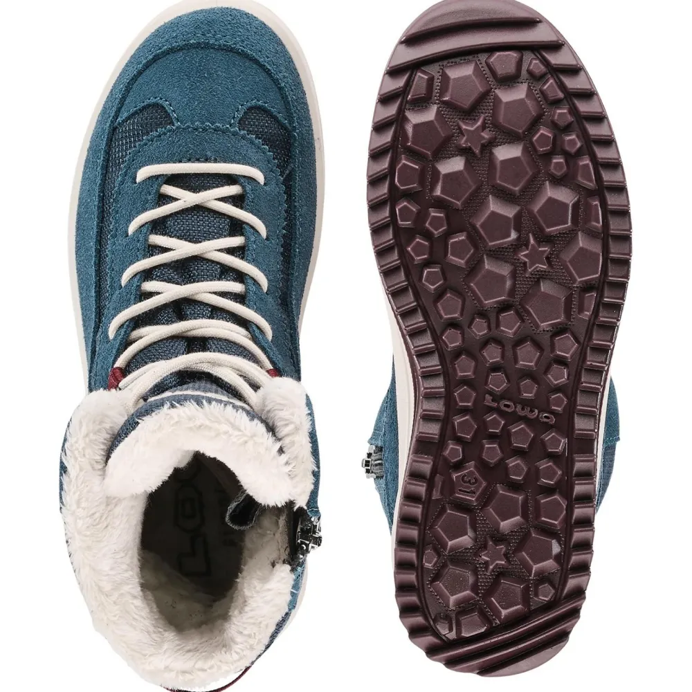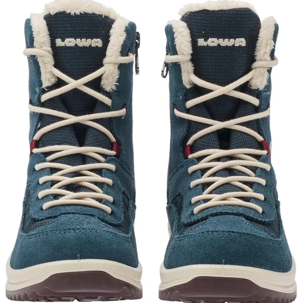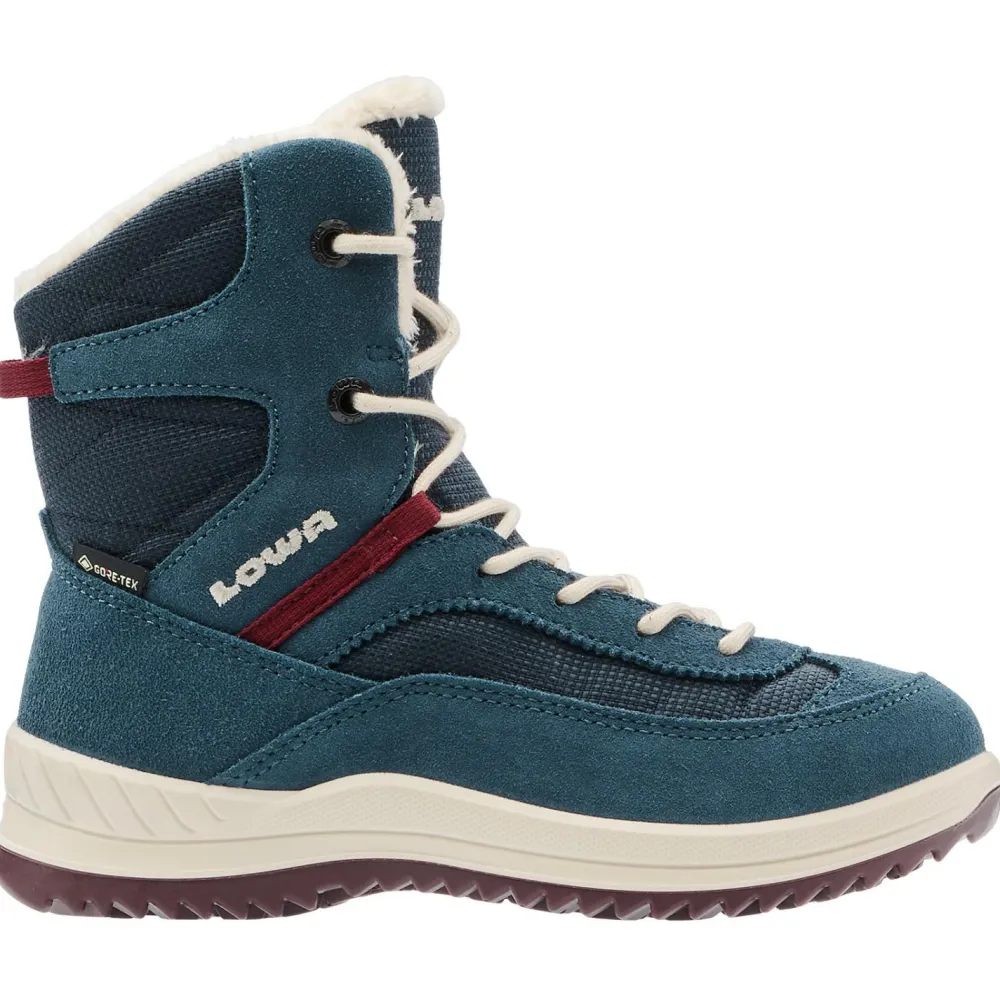 Mit den Winterschuhen Kid’s Ella GTX Hi Junior von Lowa sind die kleinen Abenteurer gut ausgestattet! Die Stiefel kommen mit einer wasserdichten und atmungsaktiven GORE-TEX Membran daher, die für Nässeschutz sorgt. Dank hohem Schaft hat man eine gute Stabilität und mehr Wärmekomfort. Das kuschelige Innenfutter optimiert die Isolierung.