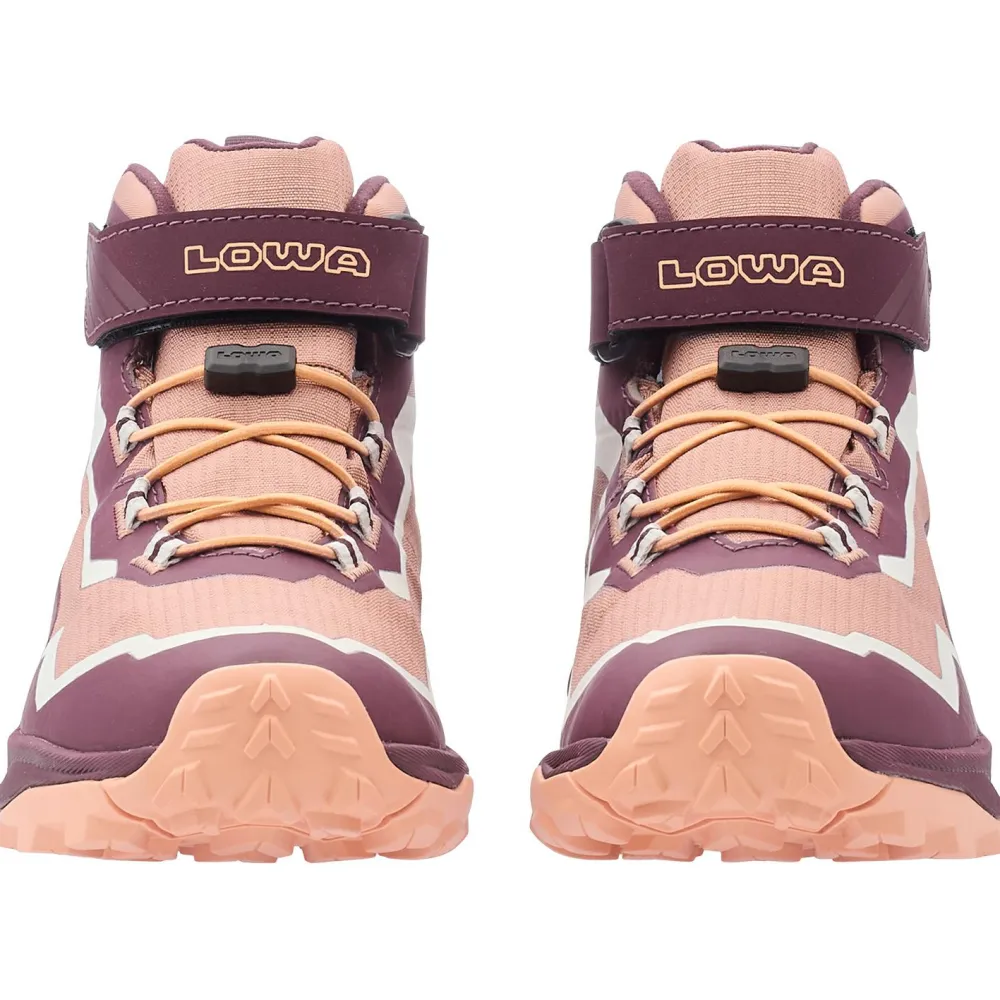 Dier praktische Schnellschnürung erleichtert das An- und Ausziehen deutlich, und der hoch geschnittene Schaft bietet richtig guten Halt. Die griffige LOWA-Gummilaufsohle bietet optimalen Grip für schnelle und wendige Bewegungen auf jedem Terrain. Zusätzliche PU-Verstärkungen machen den Schuh besonders widerstandsfähig – perfekt für aktive Kids.