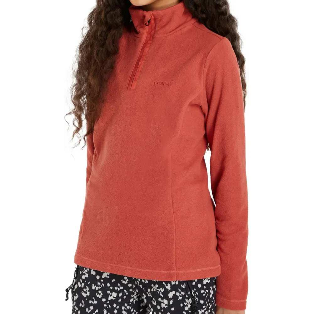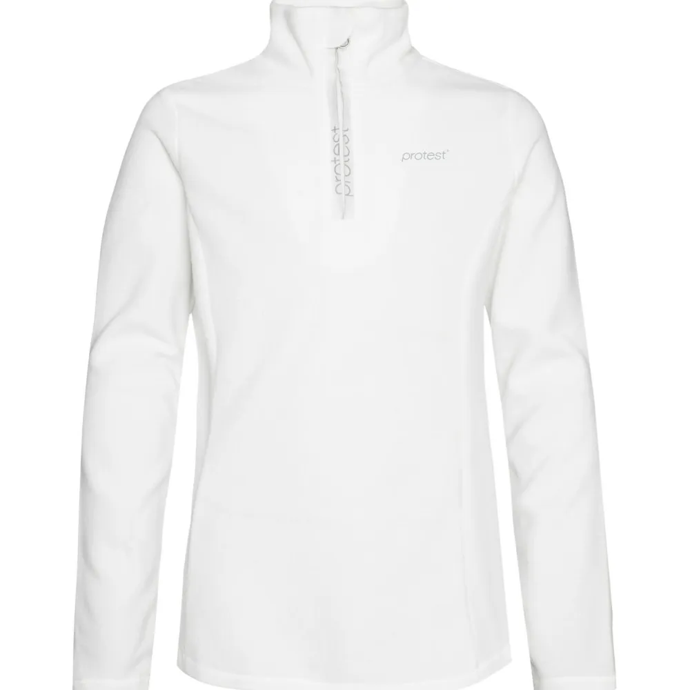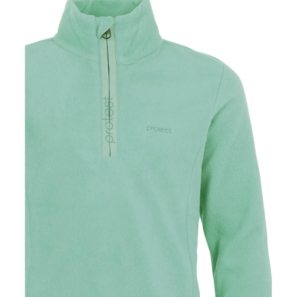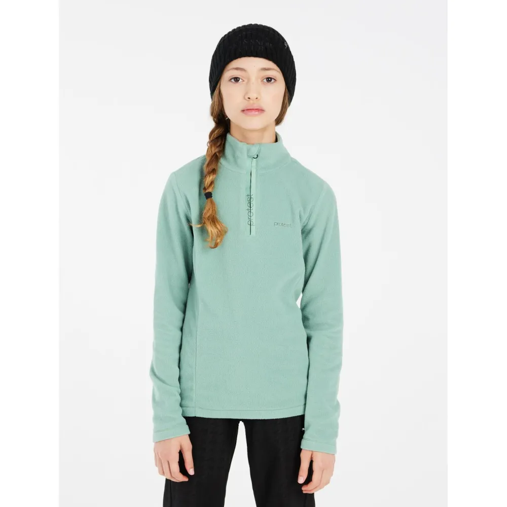 Die perfekte Schicht unter der Skijacke – der Girl’s Mutey JR 1/4 Zip Top von Protest ist ein fantastischer Microfleece-Pulli der auch an kühlen Tagen angenehm warm hält. Das Material leitet Feuchtigkeit ab, damit auch nach anstrengenden Aktivitäten ein trockenes und tolles Tragegefühl bestehen bleibt und die Kleinen nicht auskühlen. Der hohe Kragen schützt den Nacken vor kaltem Wind und der Reißverschluss lässt bei steigenden Temperaturen für frische Luft sorgen. Genau das Richtige, damit die Kids bei jedem Wetter gut aufgehoben sind.