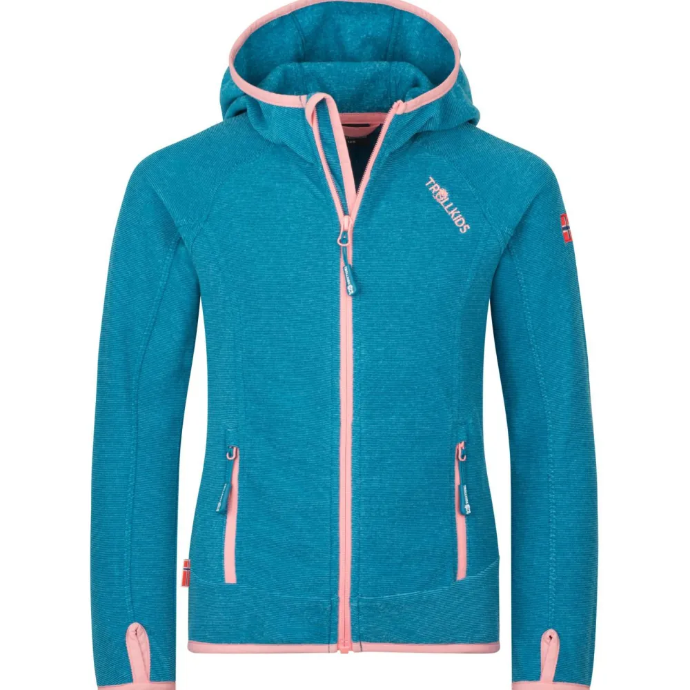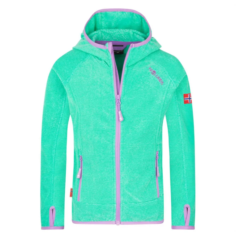 Mit der kuschligen Fleecejacke Girls Sanderfjord Jacket von Trollkids sind Mädchen angenehm warm angezogen. Die körpernah geschnittene, leichte Fleecejacke in kindgerechtem Design hält trotz ihres geringen Gewichts angenehm warm und ist mit einer gut sitzenden Kapuze ausgestattet. Elastische Ärmelbündchen und ein elastischer Saum halten die Wärme am Körper und optimieren die Passform. Zwei Taschen mit Reißverschluss bieten Stauraum für alles, was kleine Mädels unterwegs gerne dabei haben. Mit schönem, gesticktem Trollkids-Logoprint am Ärmel.