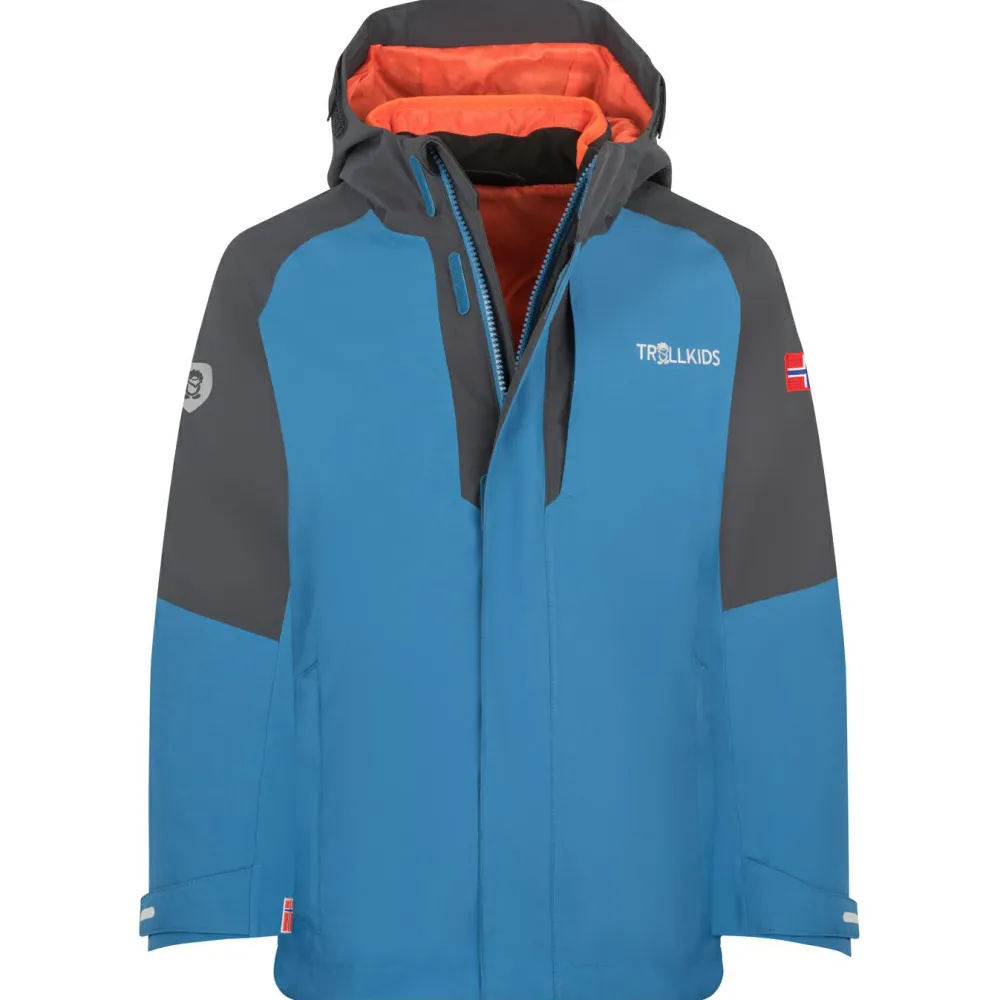 Skifahren oder Freizeitaktivitäten, mit der Doppeljacke Kid’s Skanden 3in1 Jacket von Trollkids bist Du immer gut ausgestattet! Die Außenjacke ist mit ihrem wasserdichten Material der ideale Schutz vor widrigen Witterungsbedingungen. Zudem ist das Material atmungsaktiv, damit sich keine Körperfeuchtigkeit innerhalb der Jacke anstaut. An besonders ungemütlichen Tagen erhöht die verstellbare Kapuze den Schutz. Geräumige Taschen bieten Platz für Kleinigkeiten.