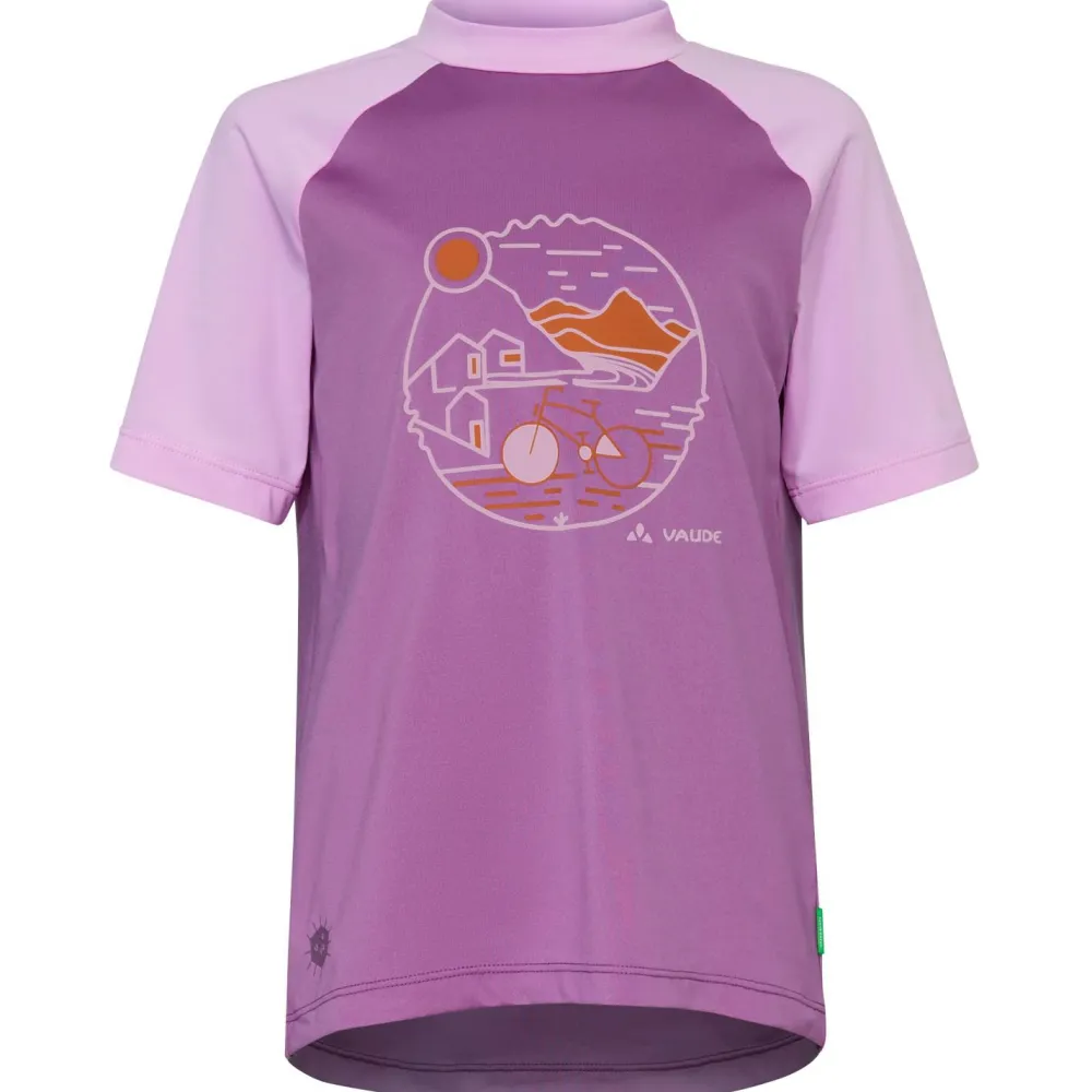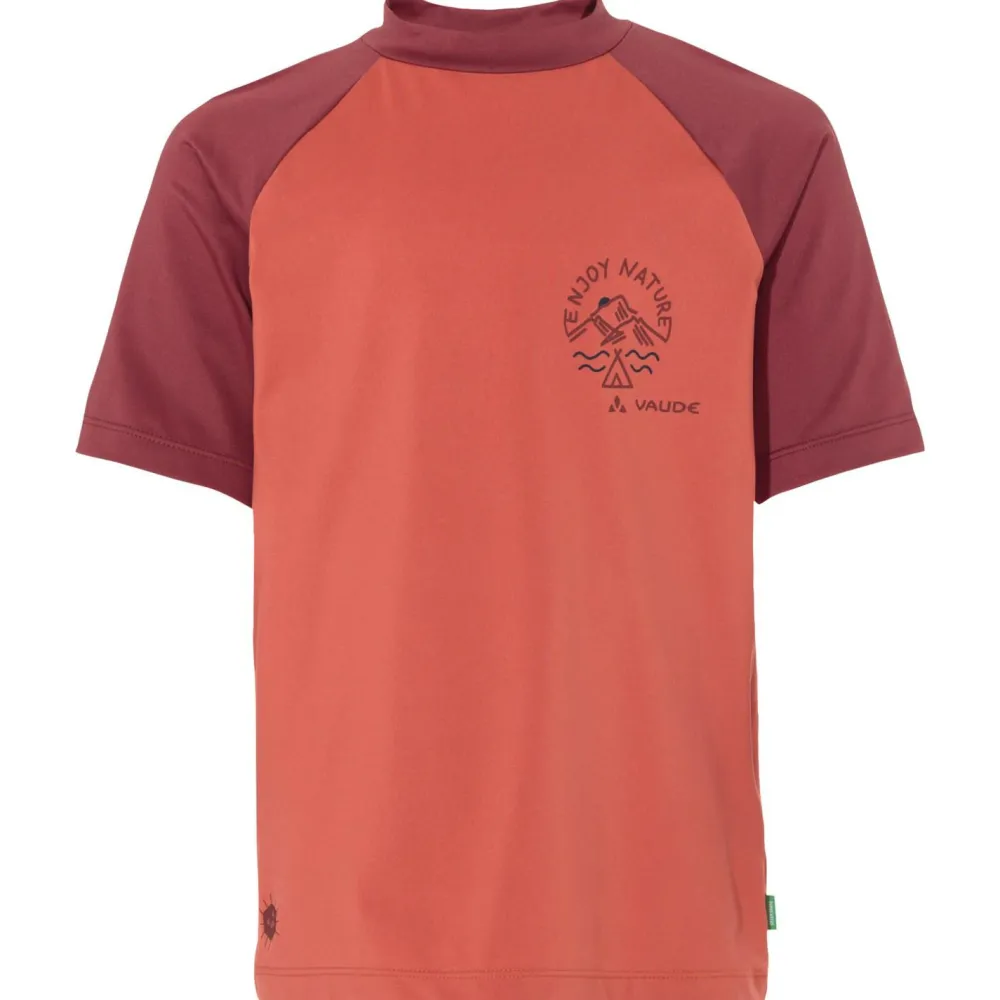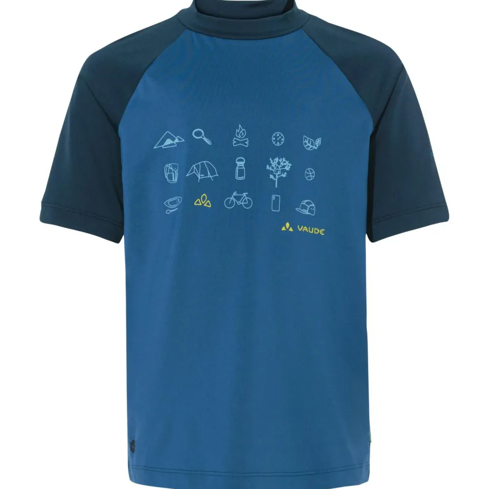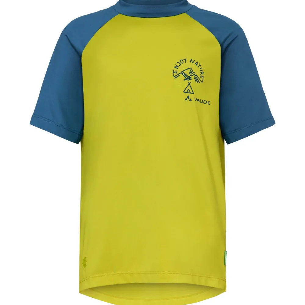 Das Kid’s Solaro T-Shirt III von Vaude ist ein Funktionsshirt mit einem angenehmen Materialmix aus recyceltem Polyester und Elasthan. Das Gewebe ist elastisch und pflegeleicht und eignet sich für den Schulalltag genauso, wie für die Freizeit und den Sport. Sein hoher UV-Schutzfaktor ist auch für die Berge ausreichend und wird ohne Chemikalien, allein durch Faserauswahl, Webart und Dicke des Materials erreicht.