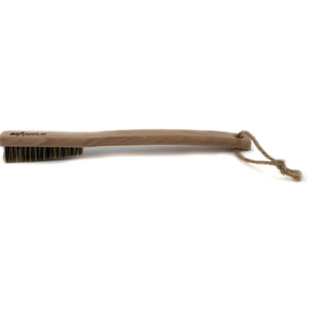 Die Kletterbürste Albarracin von Mantle besteht aus zertifiziertem Buchenholz und Schräg angeordneten Wildschweinborsten und wird in Deutschland produziert. Sie eignet sich hervorragen zum Reinigen von kleinen Spalten und Löchern.