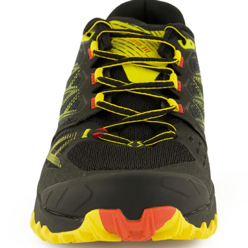 Die warme Jahreszeit steht vor der Tür und Du suchst noch die passenden Trailrunningschuhe? Dann sind die Bushido lll von La Sportiva genau das Richtige für Dich. Diese Schuhe zeichnen sich vor allem durch ihre Vielseitigkeit im Gelände und ihre Stabilität aus. So sorgt die aggressive FriXion Red Laufsohle für optimalen Halt, egal ob dämpfender Waldboden, weiche Wiese oder steiniger Wanderweg. Die dämpfende Zwischensohle mit Steinschutzplatte gibt Dir dabei stets ein angenehmes Laufgefühl und schützt vor Steinen, Wurzeln und Co.