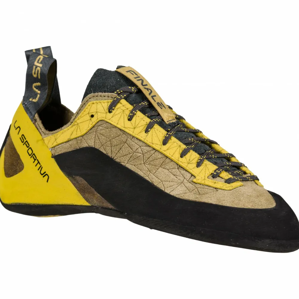Die Finale Kletterschuhe von La Sportiva sind echte Allrounder und sowohl für die Halle als auch für den Fels gut geeignet. Mit neutralem Leisten und nur leichtem Vorspann zählen diese Schuhe zu den bequemeren Kletterschuhen, die auch für ganztägige Einsätze gut geeignet sind. Dank der Schnürung hast Du auch die Möglichkeit, die Schuhe enger oder weiter zu schnüren, sodass Du Dich den ganzen Tag wohlfühlst. Durch die Oberfläche aus Leder sind die Schuhe sehr robust und langlebig. Langlebig sind die Finale auch, weil Du sie wiederbesohlen lassen kannst. Mit der Vibram XS Edge Sohle hast Du also nicht nur den idealen Grip, sondern kannst diese nach langem Gebrauch einfach erneuern lassen.