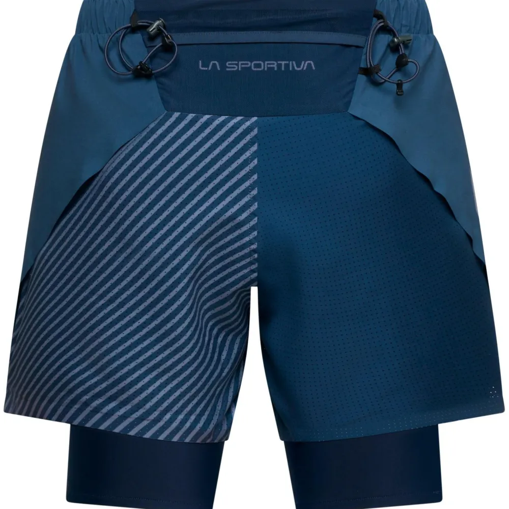 Die Flow 5 Shorts von La Sportiva besteht aus leichtem, atmungsaktivem Stretchmaterial und ist die perfekte Laufhose für lange Läufe bei warmem Wetter. Ihre bequeme Innenhose und der Silikonprint am Saum bieten Halt, während die verklebten Nähte Scheuerstellen verhindern. Die überlappende Konstruktion der Außenshorts optimiert die Bewegungsfreiheit bei steilem Bergauf. Hinzu kommt das PoleGrip-System, das sich aus zwei Schlaufen zusammensetzt, die sich jeweils auf beiden Seiten der hinteren Tasche befinden. Sie ermöglichen das Befestigen von Stöcken oder eine Jacke – falls gewünscht mithilfe eines reflektierenden Bands. Dank dieser und weiterer Extras ist die Flow 5 extrem ausdauernd und vielseitig unterwegs!