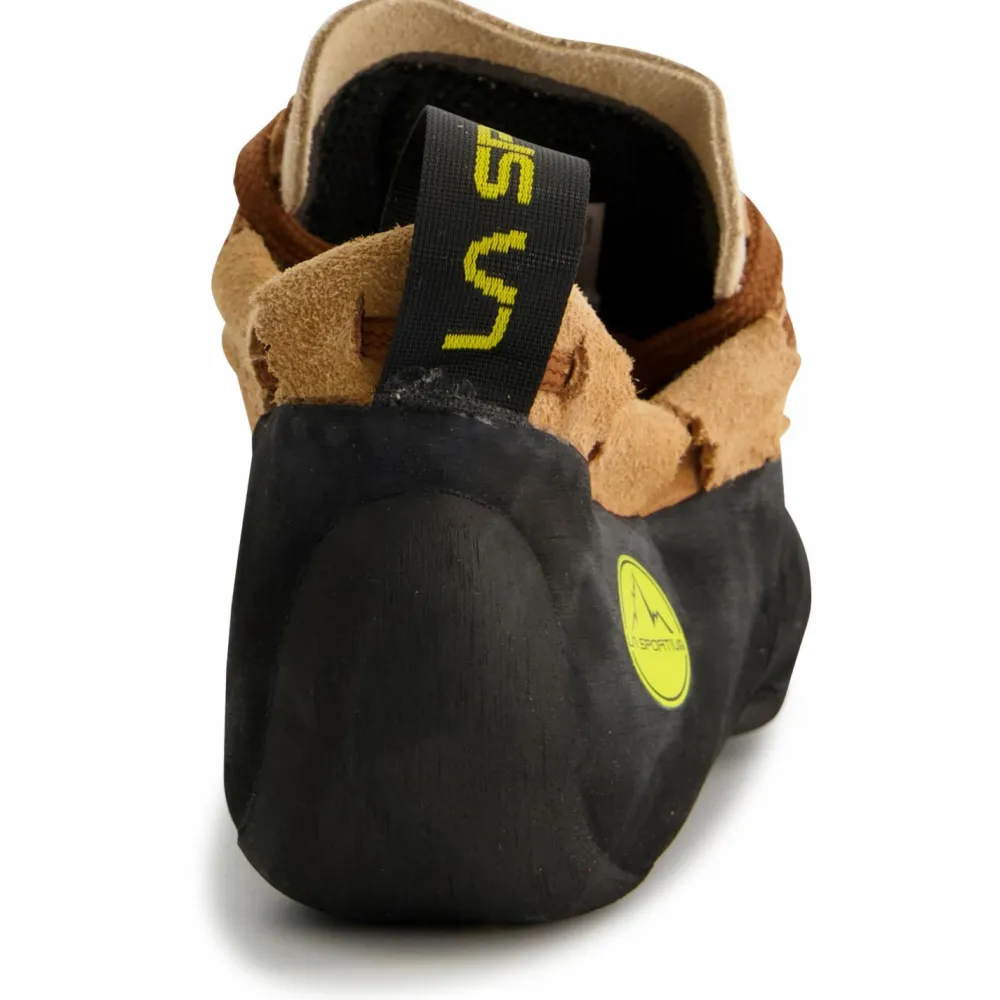 Beim Kletterschuh La Sportiva Mythos ist die Synthese aus Performance und Komfort gelungen. Dank des auch über den Fersenbereich geführten Schnürsystems sitzt der Schuh aus weichem Kalbsleder perfekt am Fuß, egal ob in Sportkletter- oder langen Alpinrouten. Der Knöchel ist sehr flach geschnitten und sorgt so für optimale Bewegungsfreiheit.