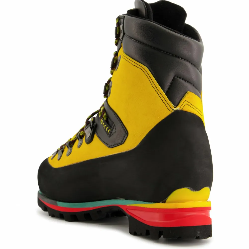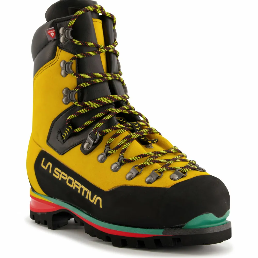 Die Nepal Extreme von La Sportiva sind isolierte und voll steigeisentaugliche Bergstiefel für anspruchsvolles Terrain im Hochgebirge und Eis.Außen bestehen sie aus wasserabweisendem Idro-Perwanger Leder, welches durch einen breiten Geröllschutzrand vor Abrieb und Beschädigungen geschützt wird.Das Futter aus Synergy Primaloft sorgt für die nötige Isolierung in kalten Gefilden. Dieses punktet mit einem tollen Gewicht-Wärme-Verhältnis, ist wasserabweisend und schnelltrocknend und leitet Fußschweiß zuverlässig nach außen. So bleiben die Füße trocken und warm.Für die nötige Wärme von unten hat La Sportiva eine 9 mm dicke Ibi-Thermo Brandsohle verarbeitet.Außen sorgt eine grobstollige Vibramsohle für perfekten Halt. Das integrierte Impact Brake System unterstützt das Bremsen beim bergab gehen und hat aufgrund der besonderen Anordnung der Noppen eine angenehm dämpfende und gelenkschonende Wirkung.Die EZ-Out Zugschlaufe ermöglicht das Öffnen der Schnürklemmen mit einem einzigen Handgriff.Mit den Nepal Extreme fühlt man sich im Hochgebirge zu Hause.