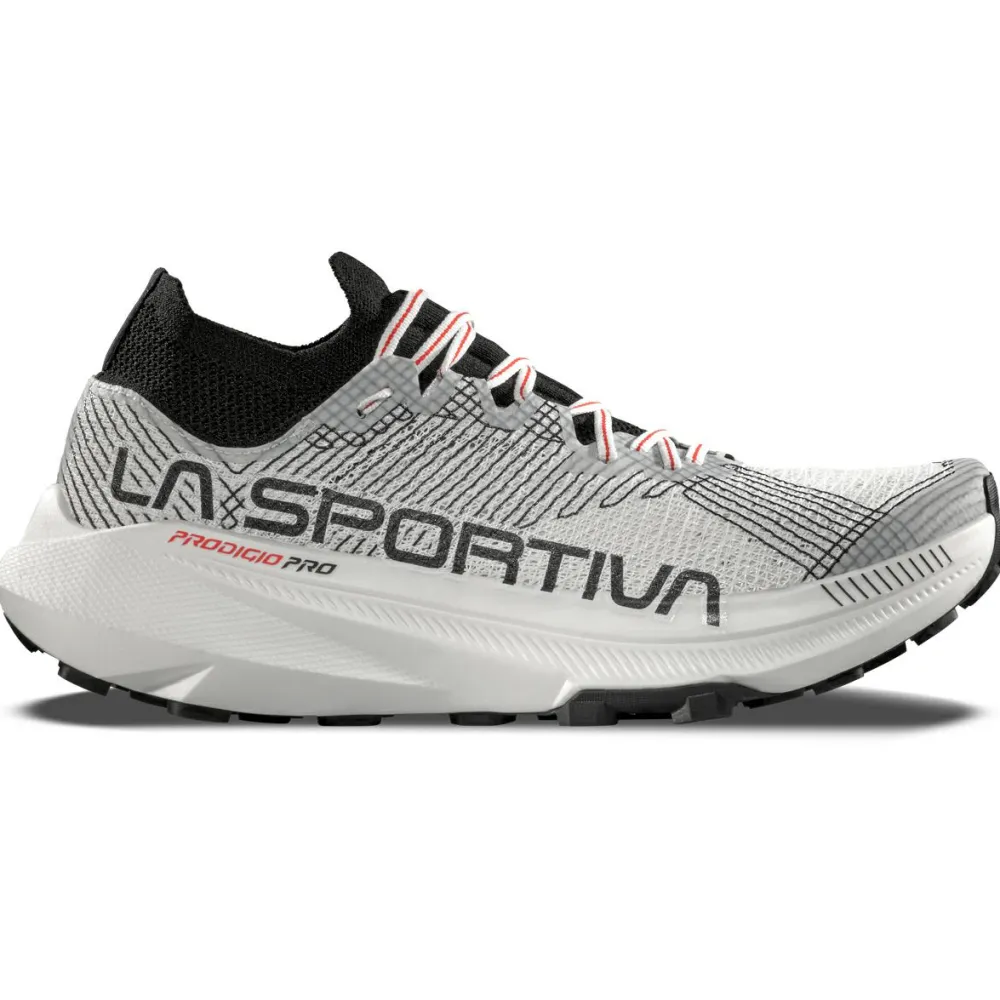 Du bist gerne schnell und effizient in den Bergen unterwegs? Dann sind die Prodigio Pro Trailrunningschuhe von La Sportiva die perfekten Begleiter für Deine kommenden Lauf-Abentuer. Eine hohe Rückfederung und Dämpfung ermöglichen einen optimalen Energiehaushalt beim Laufen. Zudem wirkt das weiche Abrollverhalten schonend auf Gelenke und Knochen. Die ausgeklügelte Technik des Schnürsystems gewährleistet eine feine Anpassung der Schuhe, sodass sich diese individuell an Deine persönliche Fußform anpassen lassen. Sehr wichtig bei holprigen Passagen, um ein Rutschen und damit auch Umknicken zu verhindern.