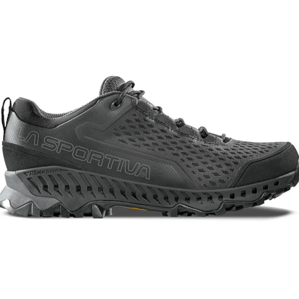 Die Kombination aus leichtem Mesh-Gewebe und der GORE-TEX Surround Technologie machen die Spire GTX Multisportschuhe von La Sportiva so hervorragend belüftet. Durch die Sohlenkonstruktion kann Wärme und Feuchtigkeit über Belüftungskanäle zu den seitlichen Öffnungen im Schuhrand geleitet werden. Da bleibt der leichte Sportschuh mit der griffigen Vibram XS Trek Sohle auch bei anstrengenden Läufen im Gebirge angenehm trocken. Für optimales Tragegefühl sorgen außerdem das Ortholite Mountain Hiking Fußbett und die dämpfende EVA Zwischensohle. Kleine Nylonnetze vor den Belüftungsöffnungen verhindern, dass die Kanäle verstopfen. Eine komfortable Schnürung und eine Anziehschlaufe an der Ferse komplettieren den leichten Outdoorschuh von La Sportiva.