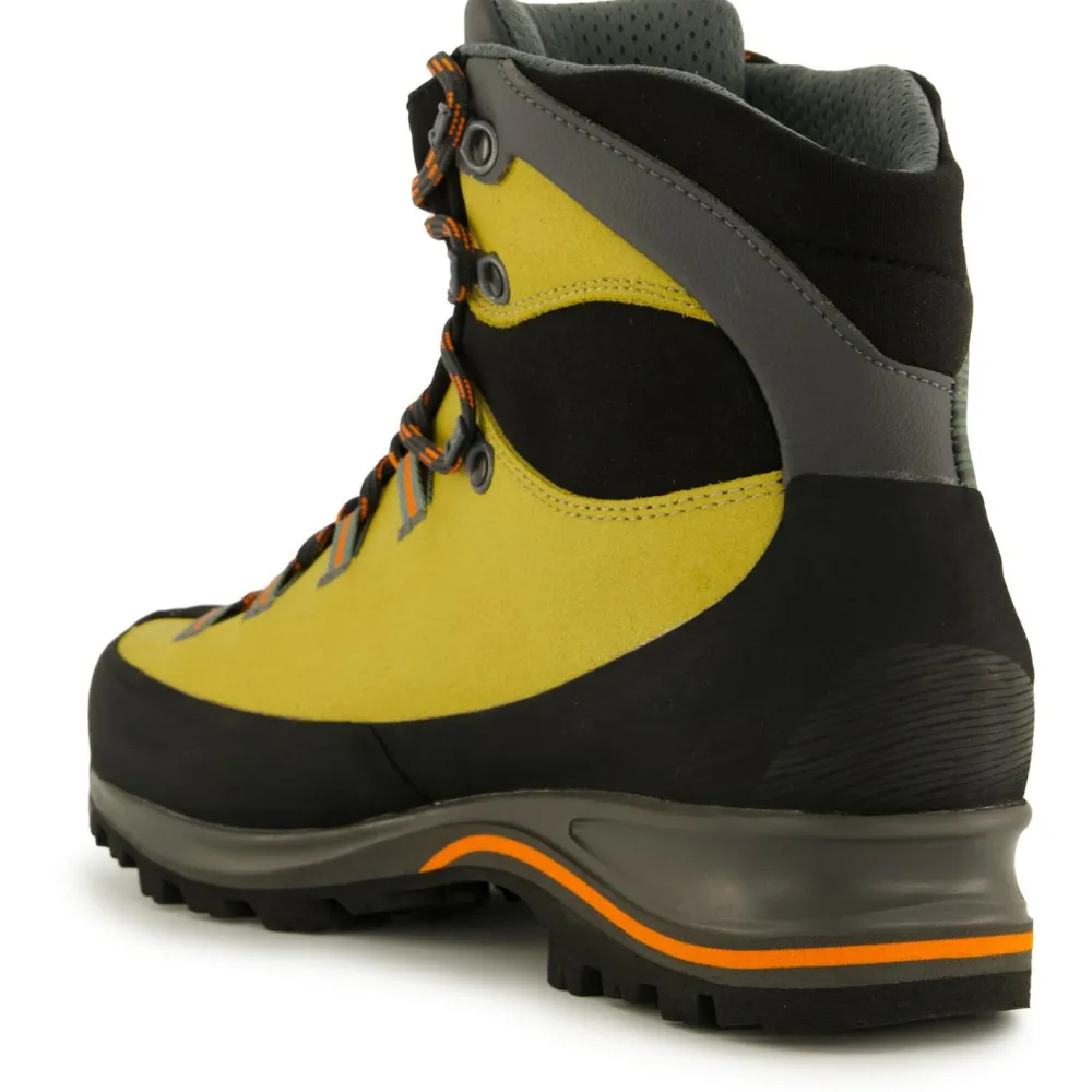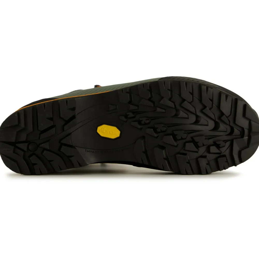 Sein wasserabweisender Schaft besteht aus Idro-Perwanger Leder mit Verstärkungen aus Mikrofasern, die zusätzlich mit einer wasserabweisenden Behandlung versehen sind. Die Wasserfestigkeit wird durch das GORE-TEX Innenfutter um ein hohes Maß an Atmungsaktivität ergänzt. Das 3D Flex System an der Beugezone des Sprunggelenk verbessert den Halt des Fußes im Schuh ohne einzuengen und ermöglicht maximale Kontrolle beim Antreten auf verschiedenstem Untergrund. Bei Klettereinlagen hilft die vorne in den Vibram-Sohlen eingesetzte, extragriffige Climbing Zone. Das Schnürsystem sorgt ebenfalls für sicheren Sitz und ist schnell und einfach zu bedienen. Gummi-Verstärkungen an Zehen und Fersen schützen die Füße vor Stößen in rauem Gelände und helfen, die Lebensdauer des Schuhs zu verlängern. All das macht den Trango TRK Leather GTX Wanderschuh von La Sportiva zu einem erstklassigen Partner, der durch dick und dünn geht!