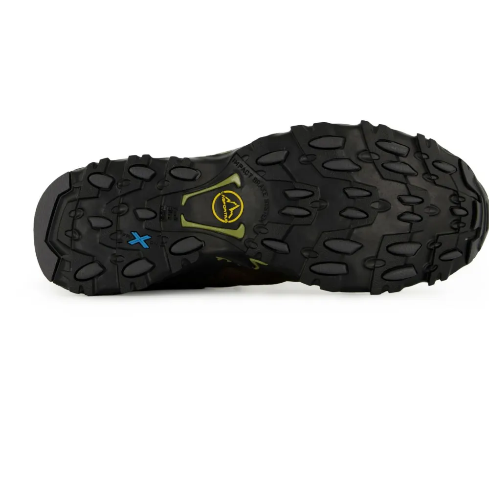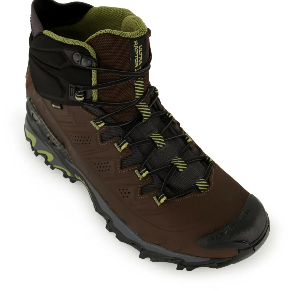 Ein stabilisierender Ferseneinsatz sorgt für Schutz vor äußeren Einwirkungen und für perfekte Kontrolle auf Querpassagen. Die FriXion Blue-Sohle aus weicher XF-Mischung mit geprägtem Trail Bite Heel-Aufsatz sorgt für bessere Bremseigenschaften beim Bergablaufen. Eine perfekte Volumenregulierung und Umhüllung des Fußes ist dank des besonderen Schnürsystems immer gewährleistet. Die Ösen auf der Innenseite des Obermaterials sind angenäht und auf der Außenseite verstärkt: Dieses System ermöglicht eine Aufteilung der Spannung der Schnürung auf das ganze Obermaterial des Ultra Raptor II Mid Leather Wide GTX.