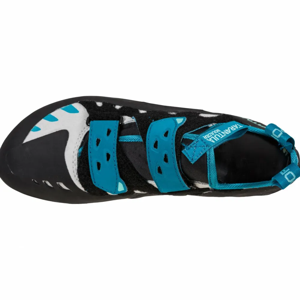 Die Tarantula Boulder Schuhe von La Sportiva eignen sich optimal für Anfängerinnen beim Bouldern. Durch den neutralen Leisten und der geteilten Sohle bieten sie Dir eine gute Mischung aus Komfort und Sensitivität. Für noch mehr Komfort sorgt die angenehme Zunge, die Du dank der Schlaufe nachjustieren kannst. Dadurch drückt sie nirgends. Die Fersenkonstruktion erhöht außerdem die Leistung bei Heelhooks und die Zehenspitze aus Gummi ermöglicht Dir präzise Toehooks. Dadurch kannst Du technisch auch als Anfängerin abliefern. Mit der FriXion Black 4 mm Sohle hast Du einen guten Grip und viel Flexibilität. Das Obermaterial aus Veloursleder macht die Tarantula Boulder Schuhe zudem sehr strapazierfähig und langlebig.