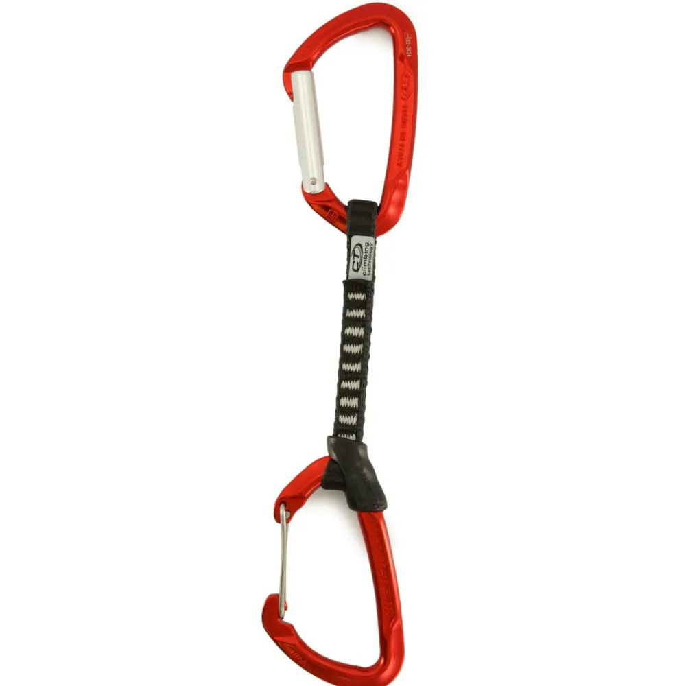 Der seilseitige Karabiner des Sets hat einen Drahtschnapper und ist mit Fixit ausgestattet. Das ist ein Gummielement, das verhindert, dass sich der Karabiner verdreht und es so zur heiklen Querbelastung kommen kann. Außerdem schützt es die Dyneemaschlinge vor Verschleiß. Das Express-Set Lime Quick Draw von Climbing Technology bietet als Teil der Bergfreunde Edition nicht nur ein gutes Handling und eine hohe Belastungsfähigkeit in Relation zum Gewicht, sondern auch ein ausgezeichnetes Preis-Leistungs-Verhältnis.