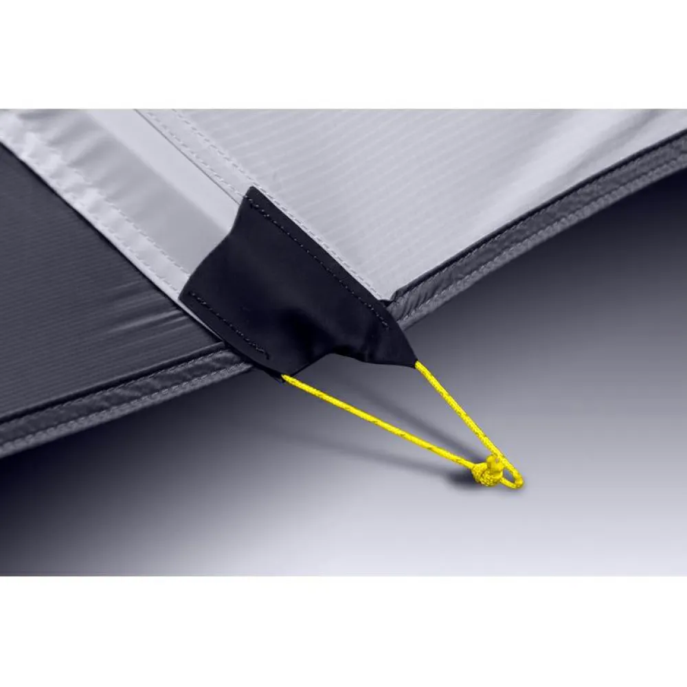 Durch das überwiegend freiliegende Gestänge kann das Außenzelt per Clips fixiert werden, was einen schnellen Aufbau garantiert. Sollte der Wind doch einmal zu stark blasen, sorgen die reflektierenden Abspannleinen für zusätzliche Stabilität. Bei Nichtgebrauch können diese ganz komfortabel mit einem Kordelverschluss zusammen gepackt werden.