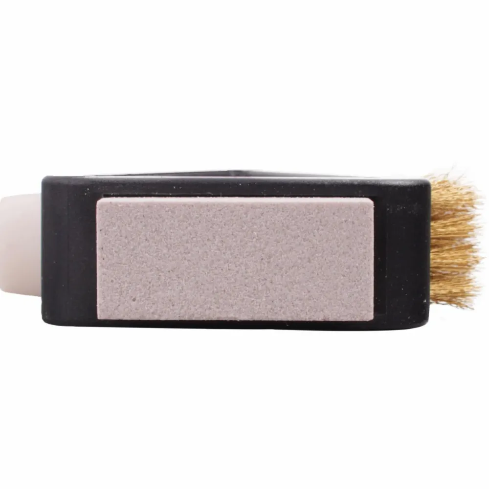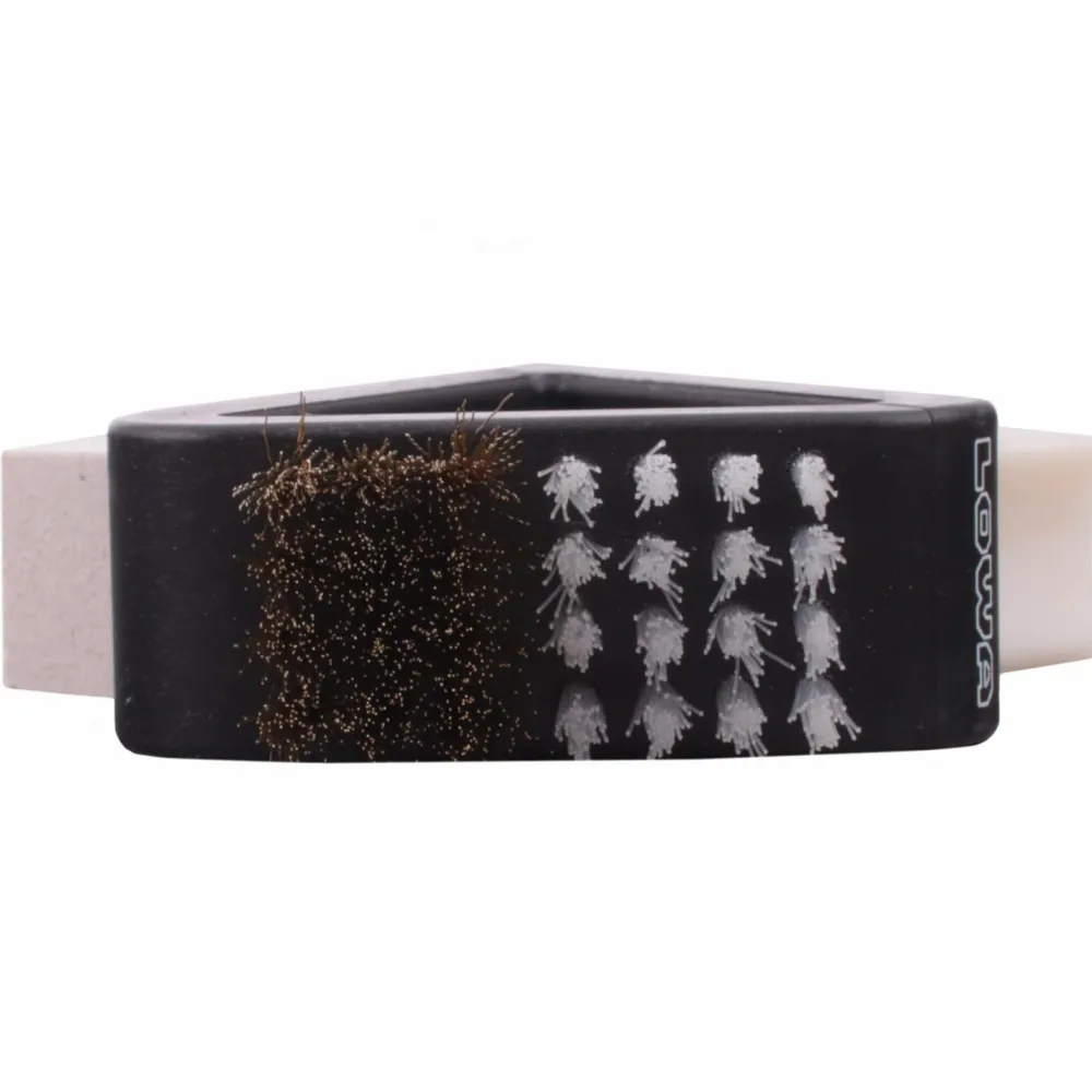 Sowohl unterwegs als auch daheim sind schmutzige Schuhe und Wanderstiefel kein Problem mehr. Die Dreiecksbürste von LOWA besteht aus einem kleinen Kunstoffdreieck mit drei verschiedenen Reinigungsflächen. Damit werden Schuhe aus Rauleder problemlos gereinigt. Die erste Seite ist mit einer Mischung aus Nylonborsten und Messingborsten versehen. Seite zwei besteht aus Gummi Krepplamellen und die dritte Seite der Dreiecksbürste von LOWA ist mit einem Reinigungsgummi bestückt.