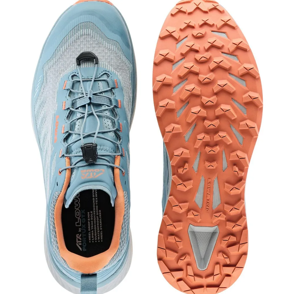 Dank wasserdichter und atmungsaktiver GORE-TEX Membran sind die Schuhe dicht und lassen trotzdem Dampf nach außen entweichen. Der anatomische Schaft sorgt für einen angenehmen Tragekomfort ohne Druckstellen. Die Ferse wird zusätzlich stabilisiert. Mit der Schnellschnürung ist das Handling ganz einfach. Laufkomfort verspricht die Lowa Trac Ultra Laufsohle mit DYNEVA Zwischensohle. Die ideale Kombination für längere Distanzen!