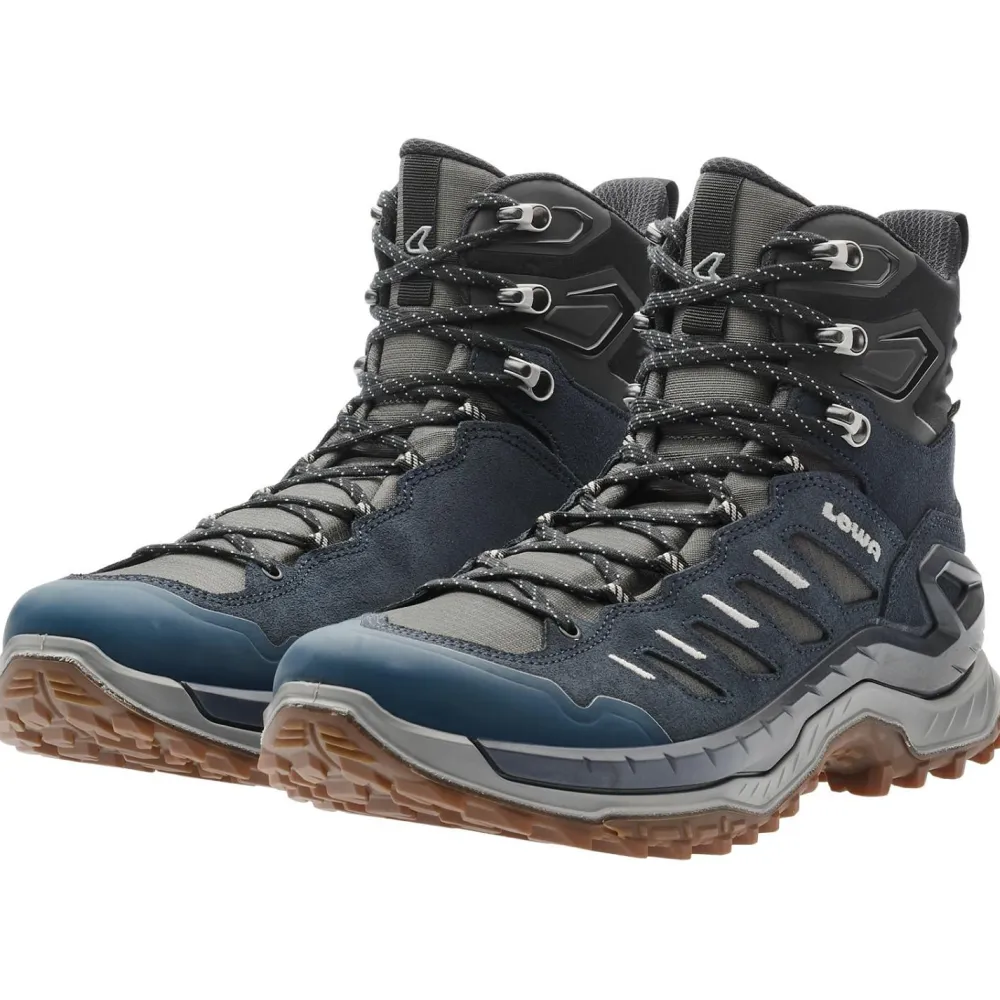 Mit den Innovo GTX Mid hat die bayerische Bergsport-Institution Lowa einen recht leichten und bequemen Wander- und Trekkingschuh im Programm, den Du Dir einmal ansehen solltest. Der Schaft dieser Wanderschuhe ist, dank des flexiblen, weichen und damit sehr komfortablen Materials auch auf langen Strecken sehr angenehm zu tragen. Durch die 2-Zonen-Schnürung sind die Schuhe optimal an den Fuß anzupassen, was des weiteren auch für sehr guten Halt sorgt. Der die Sohle umspannende Crossover Stability Frame sorgt für besten Halt und Stabilität.