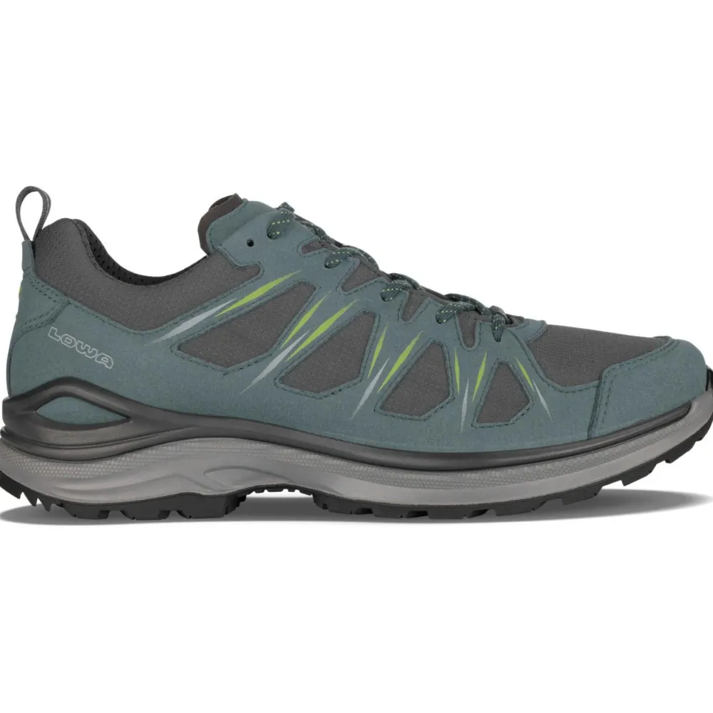 Die bayerischen Wander- und Bergschuh-Spezialisten von Lowa haben auch 1a Multisportschuhe im Programm -das beste Beispiel dafür sind die Innox Evo II GTX! Durch die bewährte GORE-TEX-Membran ist das Obermaterial sowohl wasser- als auch winddicht, bleibt dabei aber stets atmungsaktiv, so dass Du nicht fürchten musst, zu überhitzen. Und der die Sohle umspannende, den Fuß bequem einfassende und stützende Support Frame sorgt für besten Halt und Stabilität in unebenem Gelände. Die flexible Außensohle weist eine geringe Biegesteifigkeit auf, unterstützt so das natürliche Abrollverhalten des Fußes beim Gehen, und sorgt außerdem für eine gute Rückmeldung über die Beschaffenheit des Untergrundes.