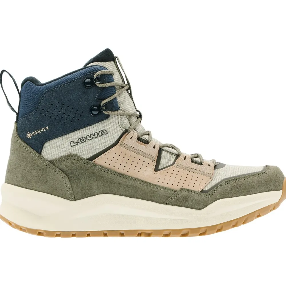 Der Kaloya GTX Mid von Lowa begleitet Dich stilvoll und wetterfest durch den Alltag. Mit seiner wasserdichten GORE-TEX-Membran und dem atmungsaktiven Mix aus Nubuk, Veloursleder und Textil bleibt Dein Fuß auch bei Schmuddelwetter angenehm trocken – egal, ob in der Stadt oder in der Natur.