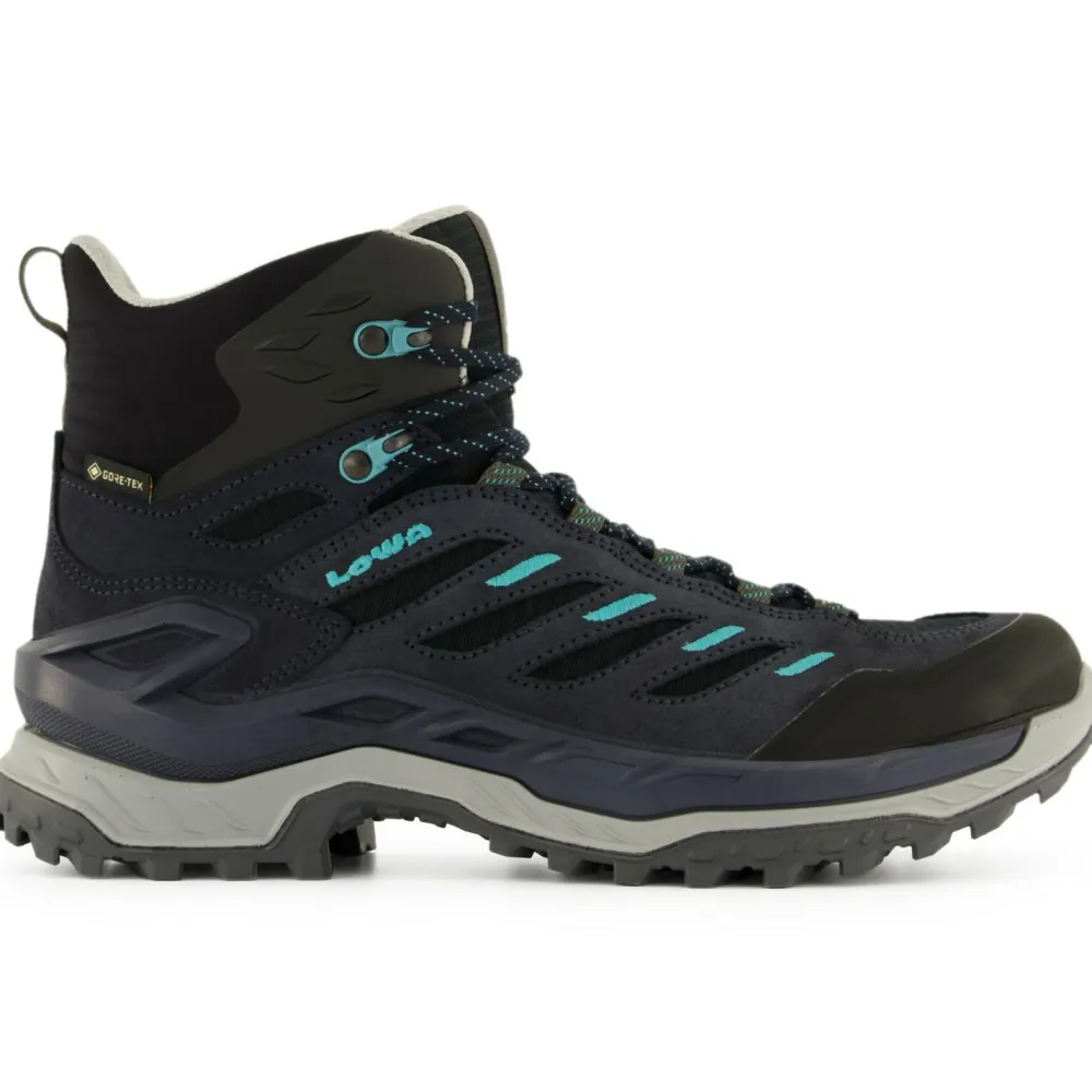 Mit den Women’s Innovo GTX Mid hat die bayerische Bergsport-Institution Lowa einen recht leichten und bequemen Wander- und Trekkingschuh im Programm, den Du Dir einmal ansehen solltest. Der Schaft dieser Wanderschuhe ist, dank des flexiblen, weichen und damit sehr komfortablen Materials auch auf langen Strecken sehr angenehm zu tragen. Durch die 2-Zonen-Schnürung sind die Schuhe optimal an den Fuß anzupassen, was des weiteren auch für sehr guten Halt sorgt. Der die Sohle umspannende Crossover Stability Frame sorgt für besten Halt und Stabilität.