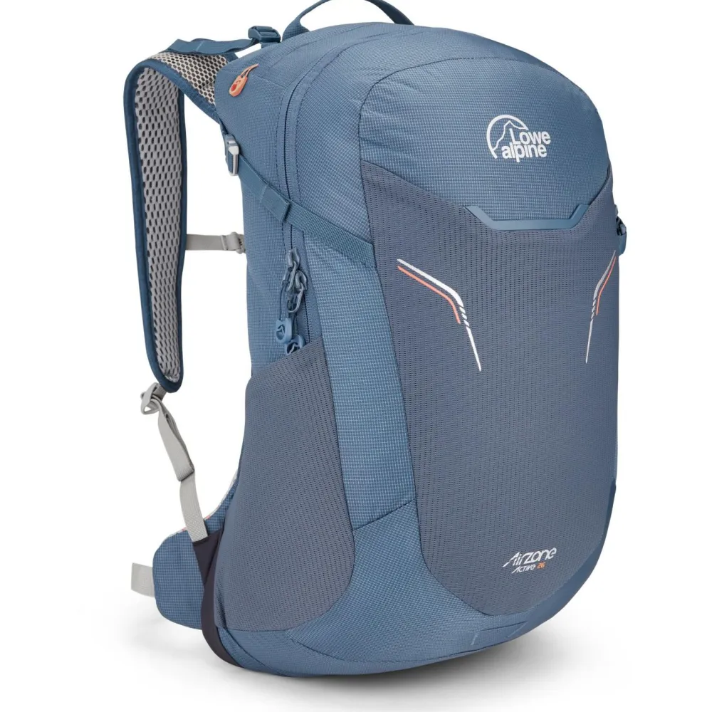 Der Airzone Active 26 Rucksack von Lowe Alpine ist ideal für Wanderungen an warmen Tagen, wo Dir der Schweiß den Rücken runterläuft. Denn dank der Mesh-Einsätze am Rücken und den Schulterträgern ist der Rucksack super angenehm zu tragen. Und weil Lowe Alpine weiß, wie lästig es ist, ständig nach hinten zu greifen oder den Rucksack gar abstellen zu müssen, um zu trinken, ist das Hauptfach mit einer 3l-Trinkblase kompatibel.