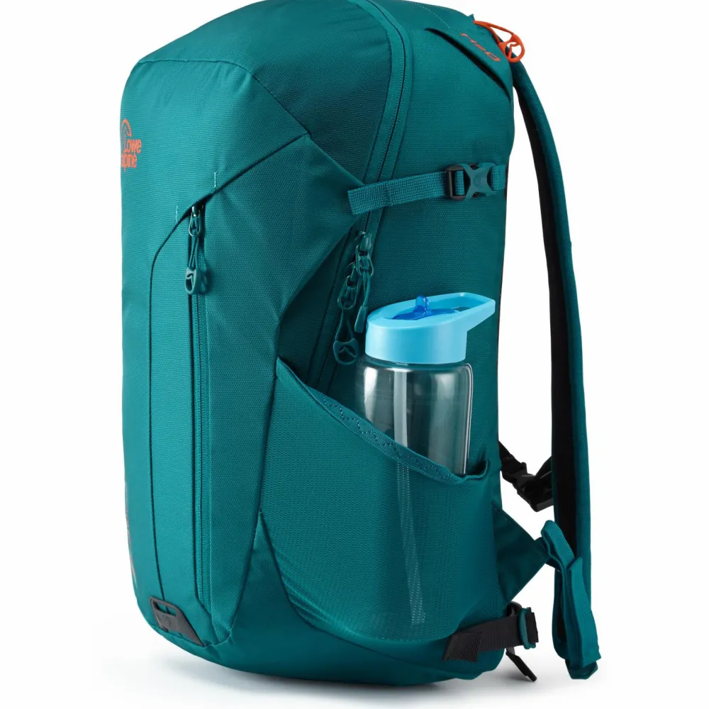 Eine clever organisierte Aufteilung bestehend aus einem weit zu öffnenden Hauptfach, einem Deckelfach, zwei seitlichen Mesh-Fächern, einem Laptop- und einem Wertsachenfach lässt in Sachen Stauraum keine Wünsche offen. Dank einer TPU-Halterung mit versteckter Schlaufe können die Trekking-Stöcke auf angenehmer Höhe verstaut werden. Der Edge 22 von Lowe Alpine ist trinksystemkompatibel. Eine reflektierende Fahrradlampenbefestigung und eine Trillerpfeiffe am Brustgurt sorgen für ein Plus an Sicherheit.
