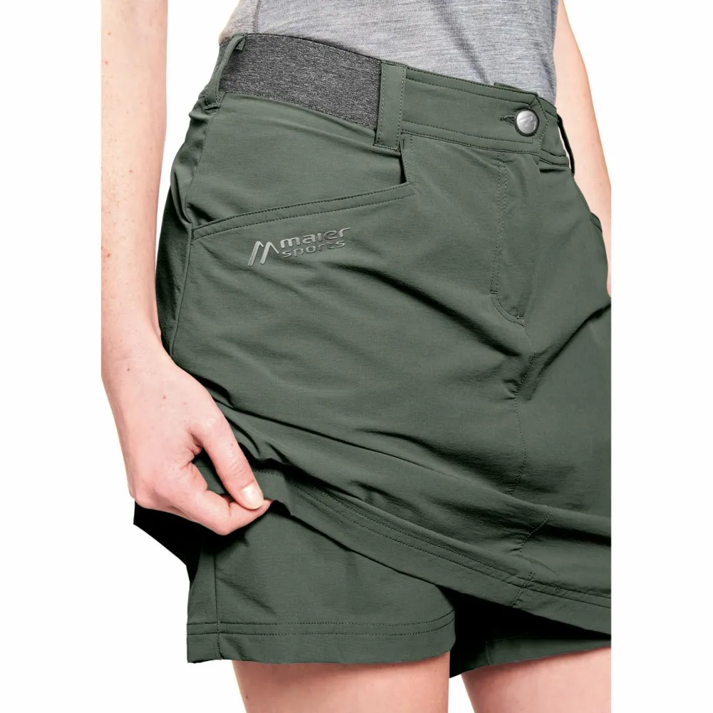 Wer auch beim Wandern und Trekking gern feminin unterwegs ist: der Women’s Norit Skortin von Maier Sports machts möglich! Der technische Outdoor-Rock ist schließlich dank seines Funktionsmaterials ideal für solche Aktivitäten. Und keine Sorge: Man kann sich dank der Innenhose voll und ganz auf das Outdoor-Erlebnis konzentrieren. Das Material des Rocks ist schnelltrocknend, atmungsaktiv sowie elastisch für eine optimale Bewegungsfreiheit. Außerdem ist es dank der PFC-freien DWR-Imprägnierung wasserabweisend. Der Hüftbund ist leicht elastisch für eine optimale Passform und bei Bedarf kann man auch noch einen Gürtel integrieren. Drei Eingrifftaschen bieten zudem Platz, um ein paar Kleinigkeiten sicher zu verstauen. Rock Dein Outdoor-Erlebnis!