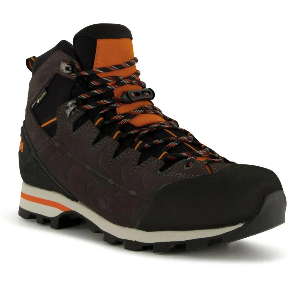 Die griffige Vibram Makra Außensohle gibt in unterschiedlichsten Terrain einen sicheren Halt. Dank der hohen Kantenstabilität können mit dem Schuh auch Kletterpassagen oder ganze Klettersteige überwunden werden. Ob beim Zustieg zur Klettertour, während dem Klettersteig oder einfach einer Wanderung durch die Berge, mit dem Makra Light GTX von Hanwag hast Du einen sicheren Halt im Gelände.