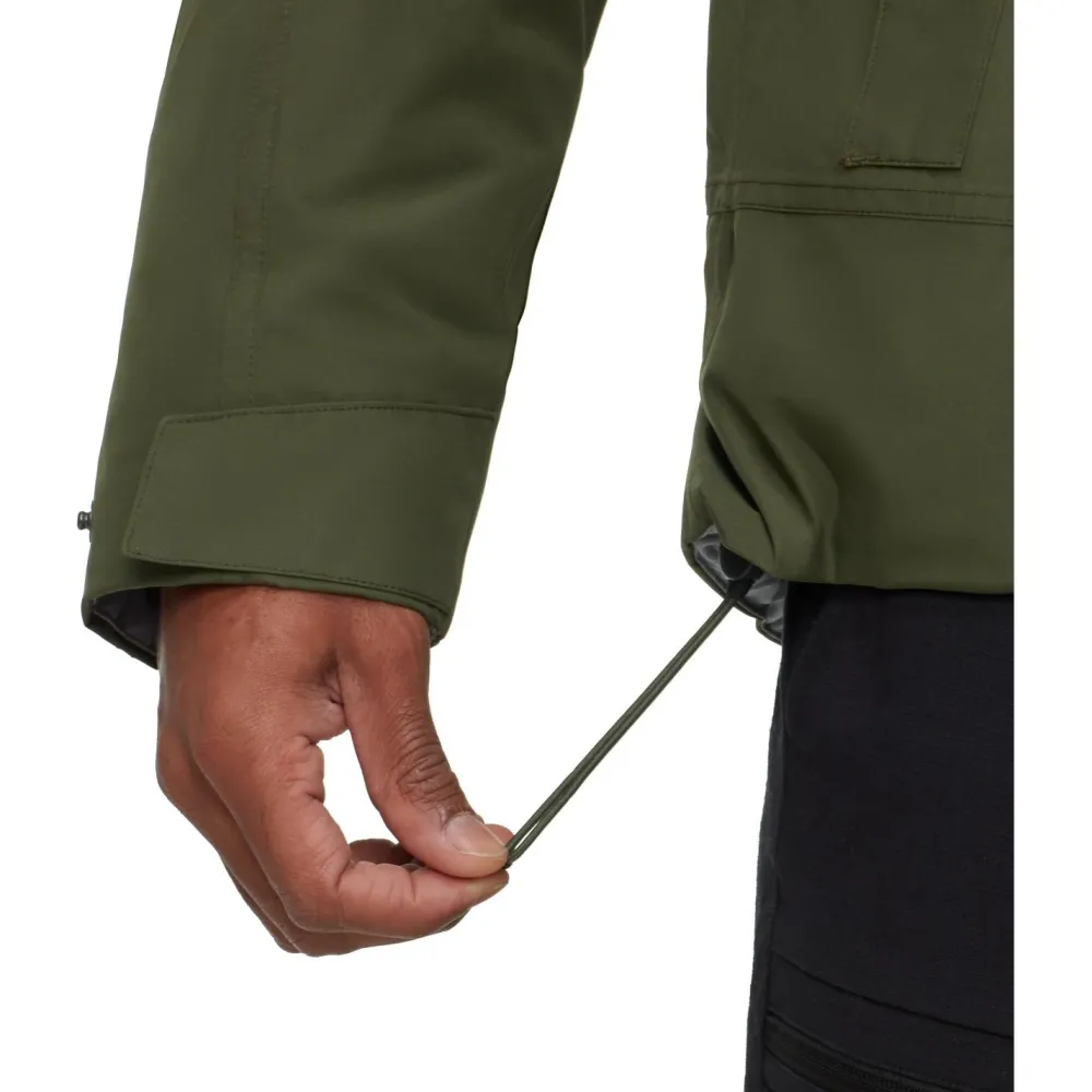 Für die perfekte Passform lässt sich die Treeline Hardshell Thermo Hooded Jacket von Mammut am Saum mit einem Kordelzug individuell einstellen und sitzt so immer perfekt. Die geräumigen Taschen sind mit Reißverschlüssen versehen und bieten kalten Händen, sowie wichtigen Gegenständen einen sicheren und warmen Ort. Damit sich auch der Kopfbereich bei Wind und Wetter wohlfühlt, ist eine verstellbare Kapuze angebracht.
