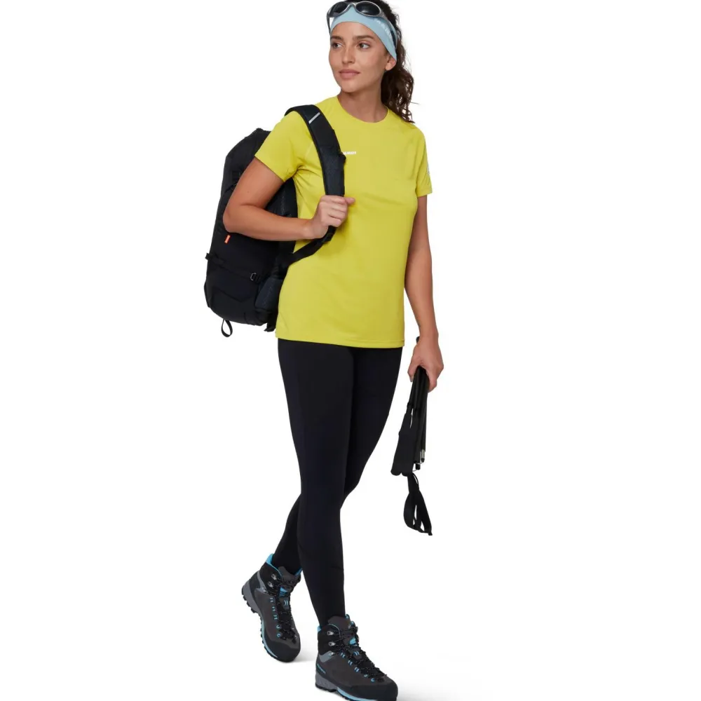 Das Women’s Ducan FL T-Shirt von Mammut ist die richtige Wahl, wenn die Intensität beim Sporteln hoch ist! Dieses feuchtigkeitsableitende und schnelltrocknende Funktionsshirt aus vollständig recyceltem Polyester sorgt von früh bis spät für angenehme Frische – egal, wie schweißtreibend die Herausforderung auch ist. Möglich machen es die robuste und zugleich luftige Textur des Materials und die biobasierte HeiQ-Fresh-Behandlung. Letztere hemmt die Entstehung unangenehmer Gerüche langfristig und auf natürliche Weise. Damit steht das Ducan FL Shirt für zuverlässigen Komfort an langen und fordernden Tagen in den Bergen!