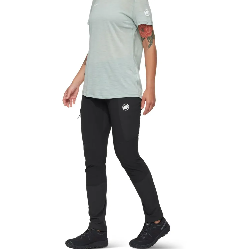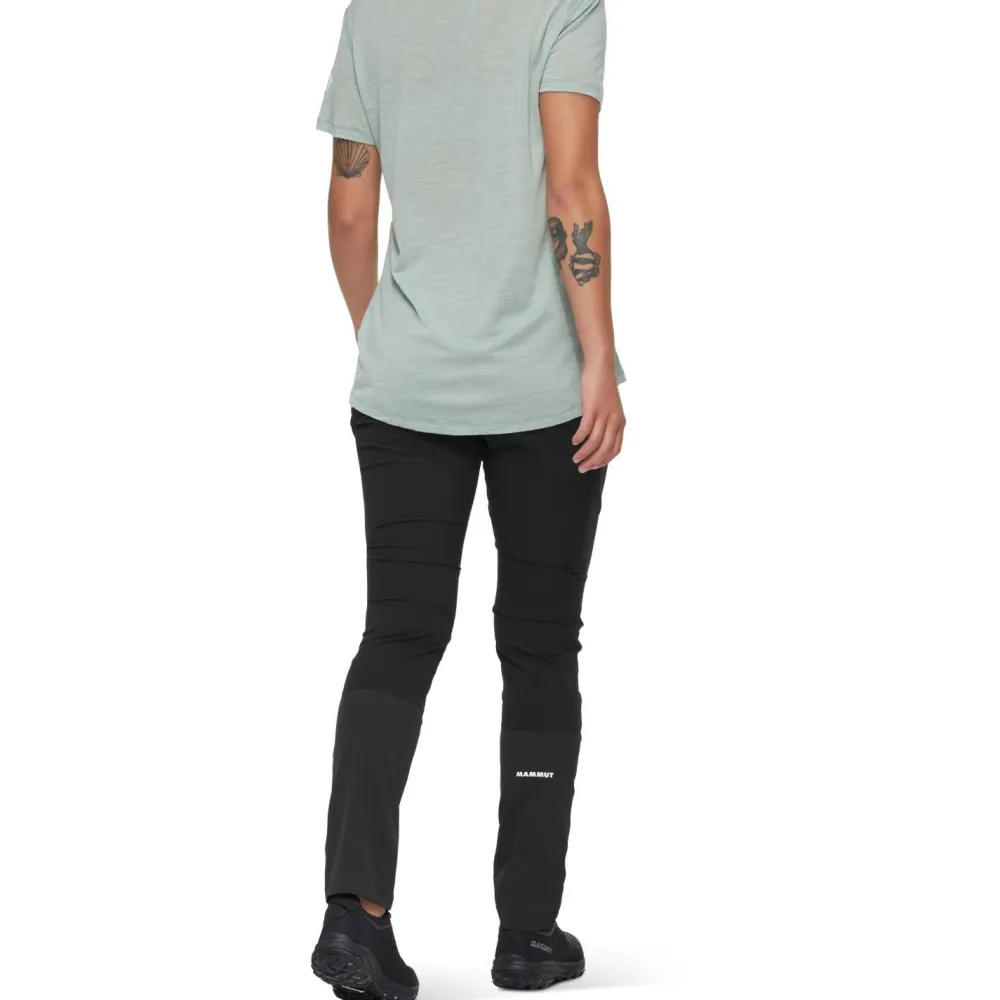 Mammut fertigt die Women’s Ducan Pants Trekkinghose aus einer strapazierfähigen Materialmischung mit Polyamid und Elasthan. So widersteht die Hose den Belastungen beim Wandern und Klettern besonders gut. Gleichzeitig sorgt das stretchfähige Material für exzellente Beweglichkeit. Ein Zwickeleinsatz im Schritt ergänzt die sportliche Hose.