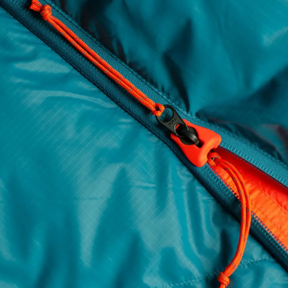 Der Women’s Protect Down Bag -21°C Daunenschlafsack von Mammut verfügt über eine warme Fußbox und eine verstellbare Kapuze mit Wärmekragen und Magnetverschluss. Mit 700 cuin Bauschkraft bietet die RDS-zertifizierte Daune ein hervorragendes Verhältnis von hoher Isolation zu niedrigem Gewicht. Mit 1390 g Daunenfüllung kommt der Schlafsack in Größe M auf nur 1724 g.