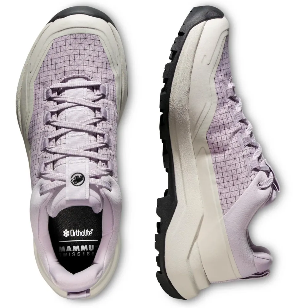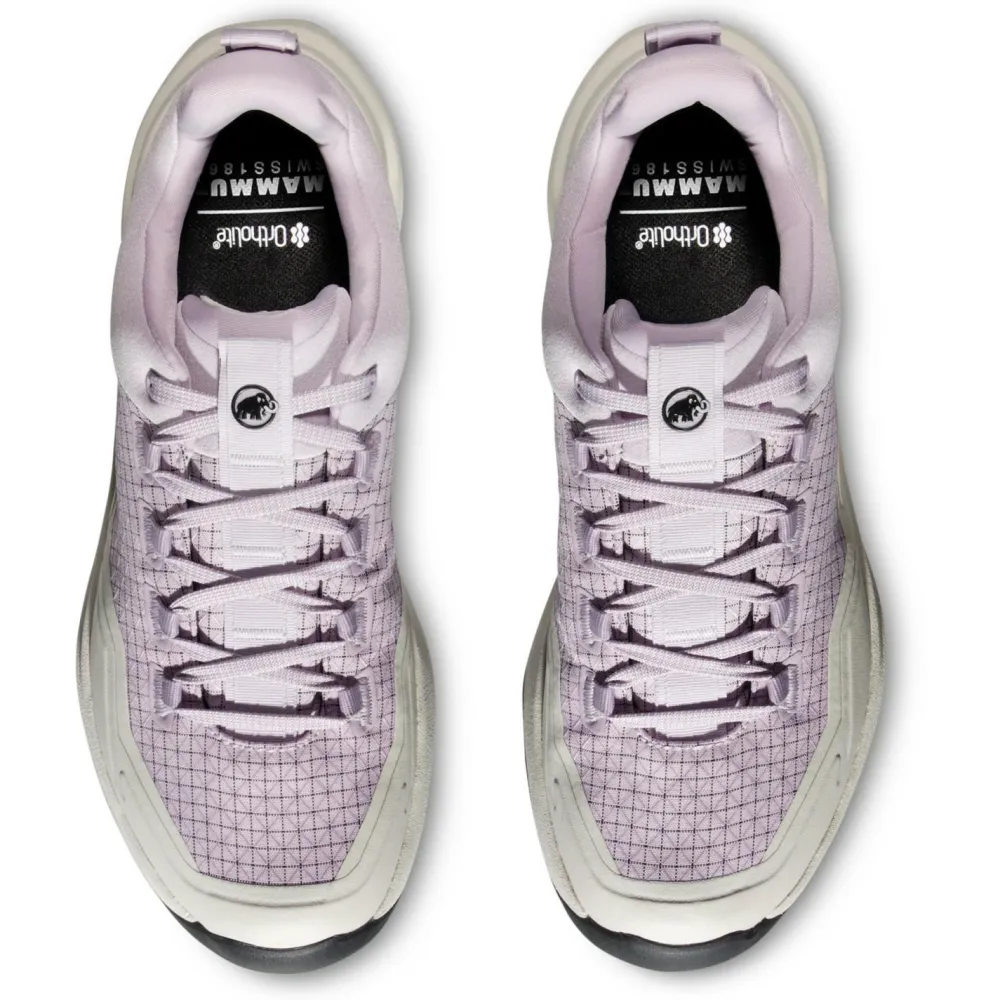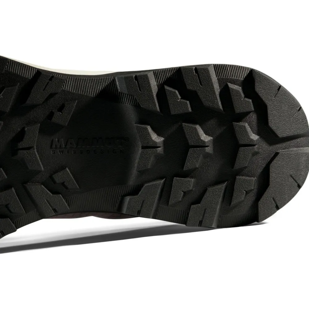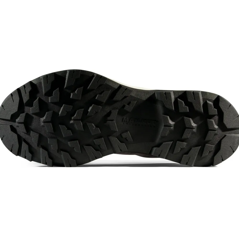 Die Mammut Swiss Design-Sohle bietet hervorragenden Grip auf verschiedenstem Untergrund, und der hochgradig rückfedernde Schaumstoff sorgt für eine effiziente Dämpfung bei jedem Schritt. Die verbesserte, etwas breitere Passform trägt sich der Schuh besonders komfortabel und die hohe Sohle bietet zusätzliche Dämpfung – ideal für lange Tage auf den Beinen.