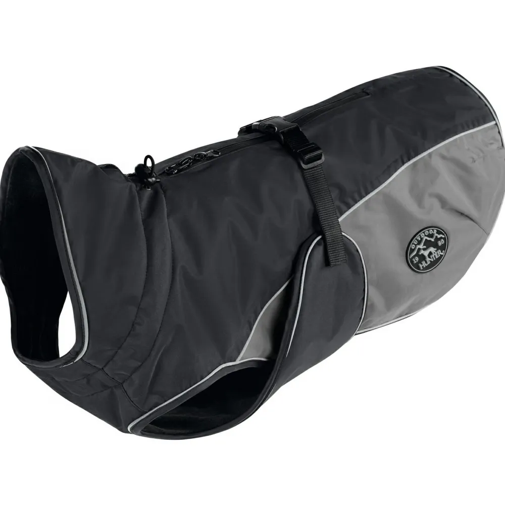 Der sportliche Hundemantel Uppsala Cozy von Hunter ist wasser- und windabweisend und ist mit seinem wärmenden Plüsch-Innenfutter eher für sehr kalte oder regnerische Tage geeignet. Die geschlossene Bauchseite und die elastischen, längenverstellbaren Fixiergummis für die Hinterläufe sorgen für einen perfekten Sitz, ganz unabhängig vom Körperbau des Hundes. So bleibt Dein Liebling bei Wind und Wetter besser geschützt.