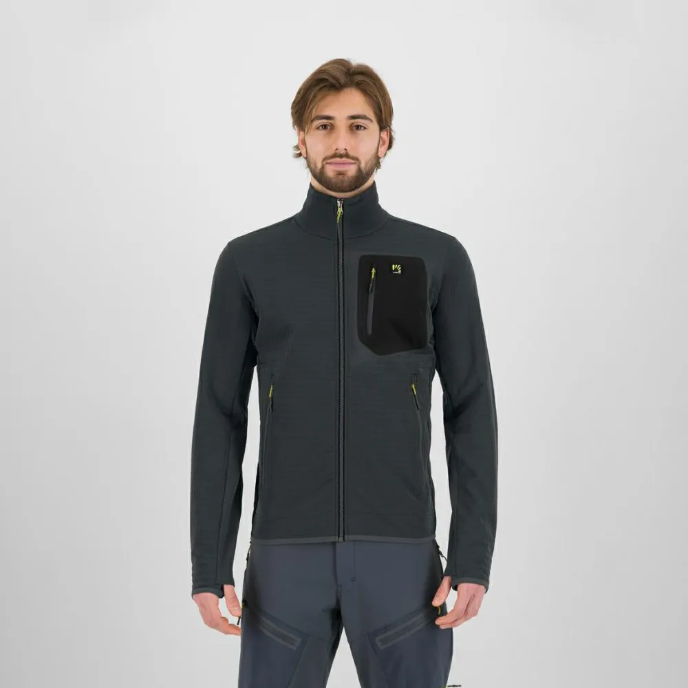 Die Marmolada Fleece von Karpos ist eine komfortable und rundum bergtaugliche Fleecejacke für den Winter. Sie ist aus wasserabweisendem Material gefertigt, dass innen mit Gaze für optimale Wärmeisolierung und außen mit Verstärkungen für abriebfeste Robustheit sorgt. Die Seiten und Unterarme bestehen aus leichten und elastischen Materialeinsätzen, die eine verbesserte Atmungsaktivität und Passform beisteuern. Für den jederzeit guten Sitz der Marmolada Fleecejacke sorgen auch die Daumenschlaufen an den Ärmelenden. Als weitere Details kommen die beiden Reißverschlusstaschen vorne und die Brusttasche mit Reißverschluss hinzu, sodass alle unterwegs benötigten Kleinigkeiten jederzeit griffbereit sind.