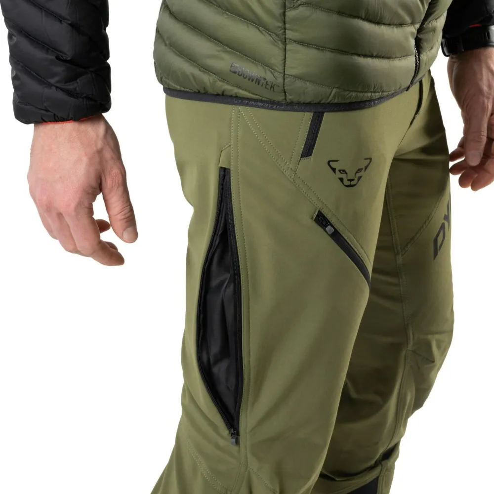 Ein echter Klassiker, der in jedem Gelände zu Hause ist – die Mercury 2 DST Pant von Dynafit! Die Tourenhose ist aus enorm robustem Nylongewebe gefertigt, welches zuverlässig vor Wind schützt und mit einer wasserabweisenden Imprägnierung ausgestattet ist. Dazu ist sie atmungsaktiv, sorgt für ein angenehmen Körperklima und reguliert die Feuchtigkeit auf der Haut. Dank des Stretchanteils sitzt sie bequem und lässt ein Maximum an Bewegungsfreiheit. Nicht zuletzt spendet das weiche Innenfutter eine angenehme Wärme, und auch das geringe Gewicht der Hose überzeugt.Clever designt sind die integrierten Gamaschen, die Schnee nicht eindringen lassen und perfekt mit dem Skistiefel abschließen. Wird es einmal besonders schweißtreibend, sorgen die Belüftungsreißverschlüsse für Luftaustausch. Auch Materialverstärkungen, welche die Hosenbeine gegen Abrieb und Schnitte durch scharfe Skikanten schützen, dürfen nicht fehlen.Der komfortable Bund ist mit Klettverschlüssen individuell anpassbar. Nicht zuletzt ist der Bund so konstruiert, dass er sich mit einem Hosenträger (nicht enthalten) zu einer Bib erweitern lässt. Die Dynafit Mercury 2 DST Pant ist eine durchaus vielseitige Softshellhose für Skitouren aller Art!