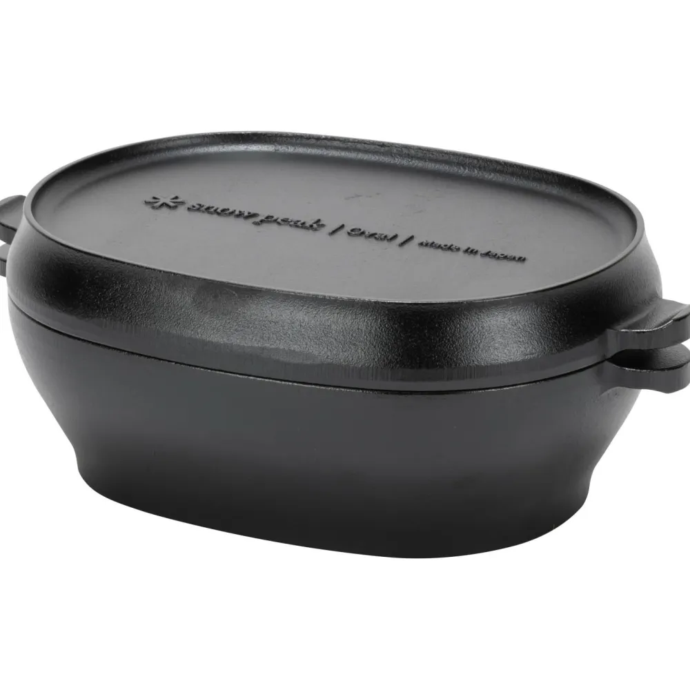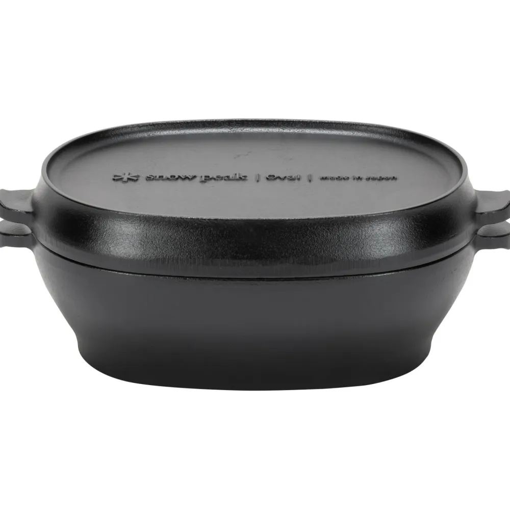 Der Micro Oval von Snow Peak ist ein kleiner, aber feiner Allrounder für Küche und Campingplatz! Der kompakte, ovale Dutch Oven ist aus langlebigem Gusseisen gefertigt und eignet sich ideal zum Garen und Backen von Beilagen oder kleineren Gerichten. Der umgedrehte Deckel kann zudem als kleine Grillpfanne verwendet werden.