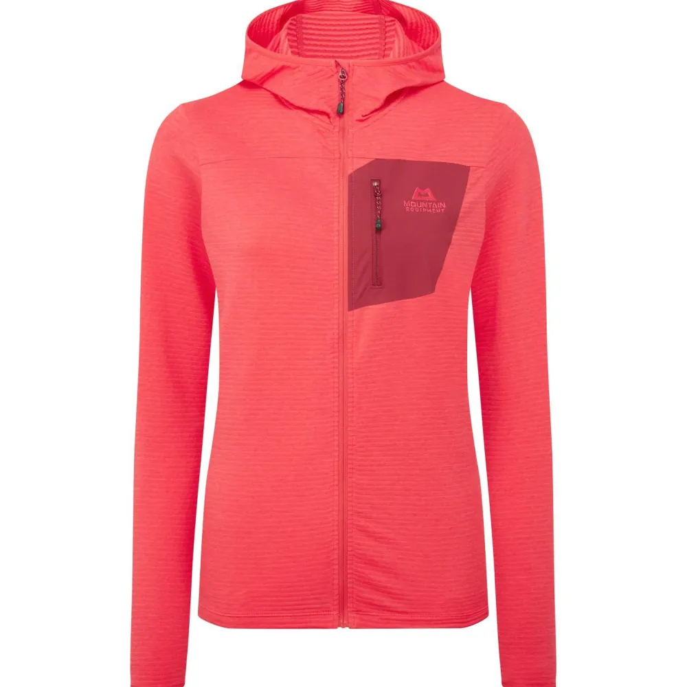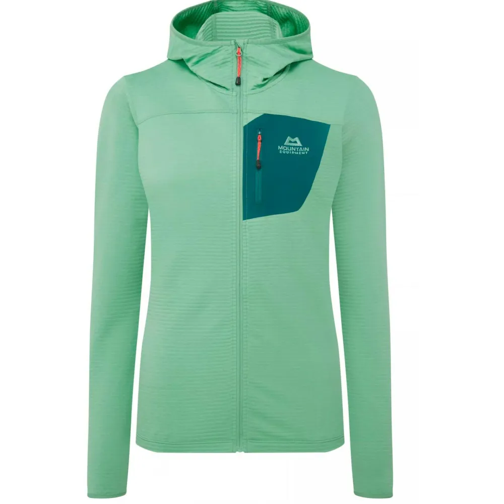 Ein tolles Teil für bewegungsintensive Unternehmungen: die Women’s Lumiko Hooded Jacket von Mountain Equipment. Die leichte und elastische Fleecejacke ist sportlich geschnitten, lässt Feuchtigkeit rasch nach außen entweichen und trocknet sehr schnell. Sie ist daher gemacht für Einsätze, bei denen die Pumpe richtig in Gang kommt.