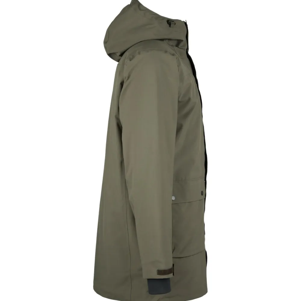 Die Füllung aus 60 % Polyester und 40 % Wolle bringt das Beste aus zwei Welten zusammen: Die Kunstfaser sorgt für Strapazierfähigkeit und schnelles Trocknen, während die Wolle für natürliche Wärme und ein angenehmes Körperklima steht. Diese Kombination macht den Parka besonders alltagstauglich – Du bleibst warm, ohne ins Schwitzen zu kommen. Gleichzeitig bleibt der Parka leicht und trägt sich angenehm, auch bei längeren Wegen oder wechselhaftem Wetter. Zusätzlich schützt Dich das 3-Lagen-Material mit 15.000 mm Wassersäule und 15.000 g/m²/24h Atmungsaktivität zuverlässig vor Nässe und sorgt für ein angenehmes Körperklima.