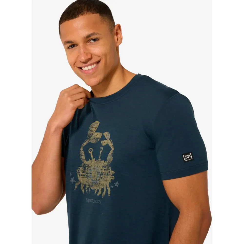 Genieße die entspannte Vielseitigkeit des Mr Crab Tee von super.natural! Das leichte Merinoshirt für Männer überzeugt durch atmungsaktive und geruchshemmende Materialien, ideal für Deinen Alltag. Dank dem dezenten Frontprint und dem bequemen Kurzarm-Design bringst Du mühelos eine Portion Coolness in Deine Freizeit. Die innovative Verbindung aus Kunstfaser und Merinowolle sorgt dabei für ein angenehmes Tragegefühl. Entdecke mit super.natural unkomplizierten Stil, gepaart mit Funktion – perfekt für Deine täglichen Abenteuer!