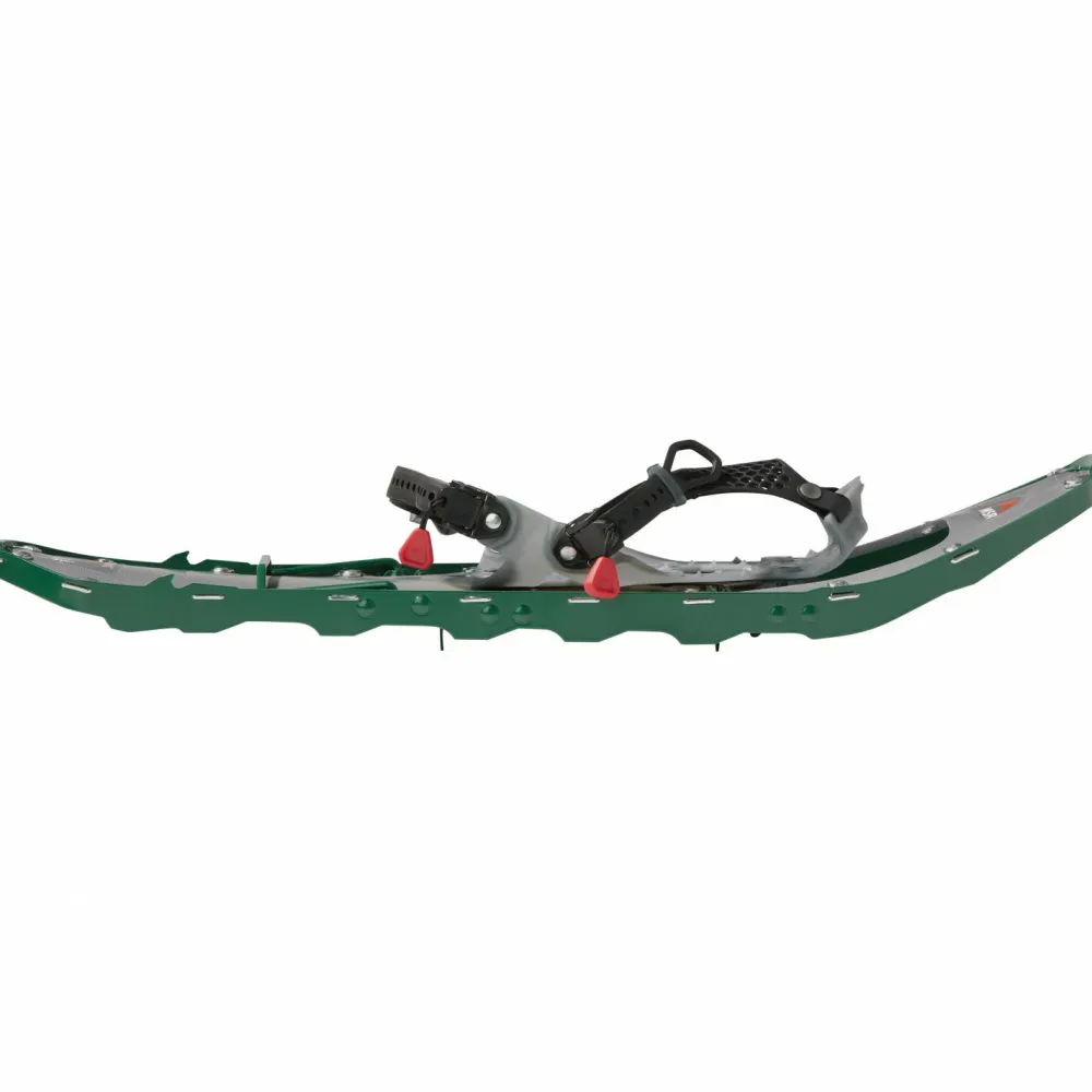 Ob flaches oder hügeliges Gelände vor einem liegt, der 360° Traction-Rahmen sorgt für hervorragende Trittsicherheit. Die Steighilfe liefert zusammen mit den Zähnen am Rand, den horizontal angebrachten Zackenleisten und den zwei Frontzacken ideale Griffigkeit und unterstützt alle Bewegungsabläufe zuverlässig. Mit der Bindung lässt sich der Schneeschuh optimal fixieren. Dadurch wird ein natürliches Abrollverhalten ermöglicht. Die Kunststoffauflage bringt beim Schneeschuhwandern mehr Auftrieb. Das ist vor allem im Tiefschnee von Vorteil und wenn man mehr Gewicht mit sich trägt. Alles in allem ist der Lightning Trail ein toller Allrounder, der jedes Abenteuer durch den Schnee mitmacht!