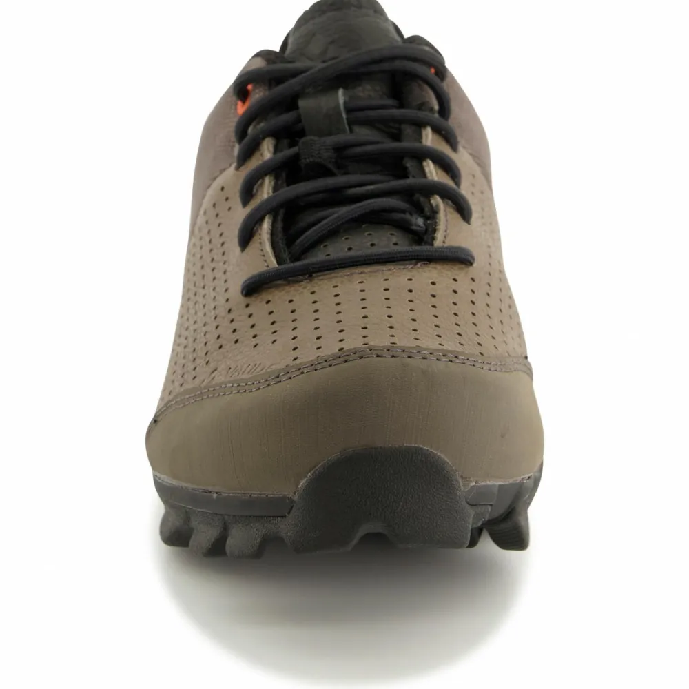 Ein Allrounder für Gravel- und Mountainbiker ist der Radschuh MTB Kuro von Vaude! Das Obermaterial aus Leder ist wasserabweisend und strapazierfähig. Für Komfort sorgt die asymmetrische Schnürung und die anatomische Einlegesohle. Belüftungslöcher im Vorfuß lassen Feuchtigkeit schnell entweichen. Die steife Laufsohle mit breiten Profilblöcken bietet eine exzellente Traktion und viel Grip. Der Schuh ist mit den gängigen Clicksystemen kompatibel. Ein sportlicher Partner für Mountainbiker!