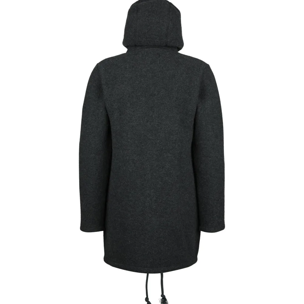 Der Patrick von Mufflon ist ein warmer Parka aus reiner Schurwolle. Diese sorgt für eine gute Wärmeisolation und hält den Körper sogar im nassen Zustand noch warm. Dies ist besonders an wechselhaften Tagen von Vorteil. Die Kapuze mit Stehkragen und der Kordelzug im Saum sorgen für einen umfassenden Schutz vor Wind und Wetter und eine gute Passform. Das besonders dicke Material des Mantels wärmt den Körper auch bei niedrigen Temperaturen und fühlt sich sehr angenehm und weich an. Er wird in einem umweltfreundlichen Walkverfahren, ohne künstliche Stoffe und Chemikalien in Deutschland hergestellt. Egal ob im Alltag oder beim Stadtbummel, dieser Parka bietet immer einen angenehmen Tragekomfort.