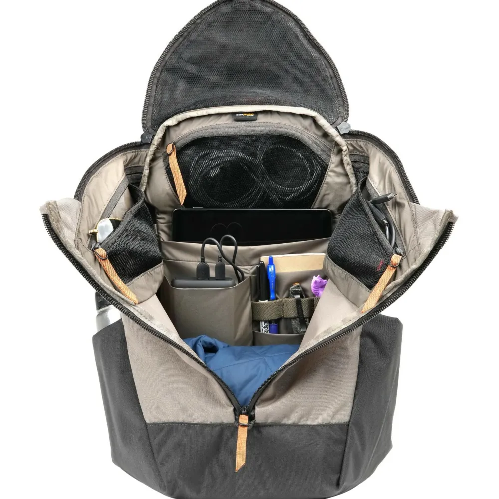 Vielseitig und verlässlich unterwegs: der Catalyst 26 Daypack von Mystery Ranch! Mit diesem robusten und dennoch umweltfreundlichen Allrounder ist man im Büro genauso gut ausgestattet wie auf Reisen und in der Natur. Möglich macht es sein robustes und teilweise recyceltes Cordura-Hauptmaterial, das auch für rustikale Outdoor-Abenteuer geeignet ist. Das außergewöhnliche 3-ZIP-Design des Catalyst 26 bietet schnellen und direkten Zugriff auf das Hauptfach. Dort befindet sich auch die gepolsterte Laptoptasche mit Reißverschluss und Trennwand für Laptops bis zu 17 Zoll.