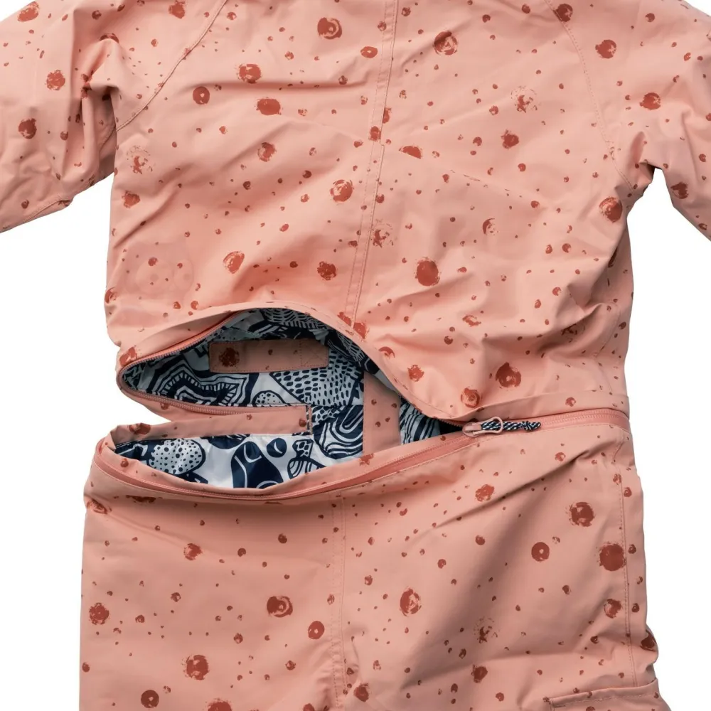 Versteckte integrierte Hosenträger bieten einen perfekten Sitz und Halt im Restaurant. Sollten die Kids mal dringend auf Toilette, verfügt der Overall über einen praktischen Reißverschluss um die Hüfte, damit es etwas schneller und unkomplizierter geht. Details wie eine Abfalltasche zum Ausstülpen und Auswaschen, eine Tasche mit einer Schnuller- und Schlüsselhalterung sowie reflektierende Elemente sorgen für einen unbeschwerten und schönen Tag im Schnee, beim Skifahren, Rodeln oder Toben.